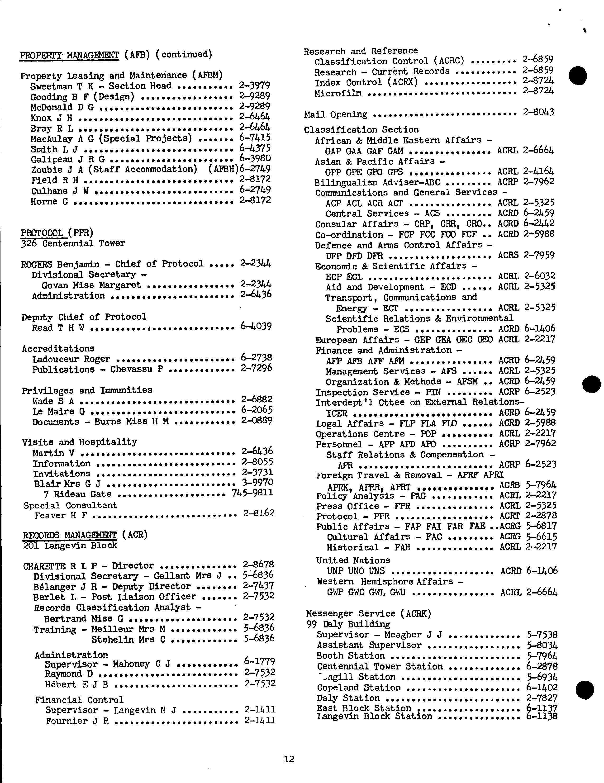 Telephone directory / Department of External Affairs. -- : Jan. 1, 1973