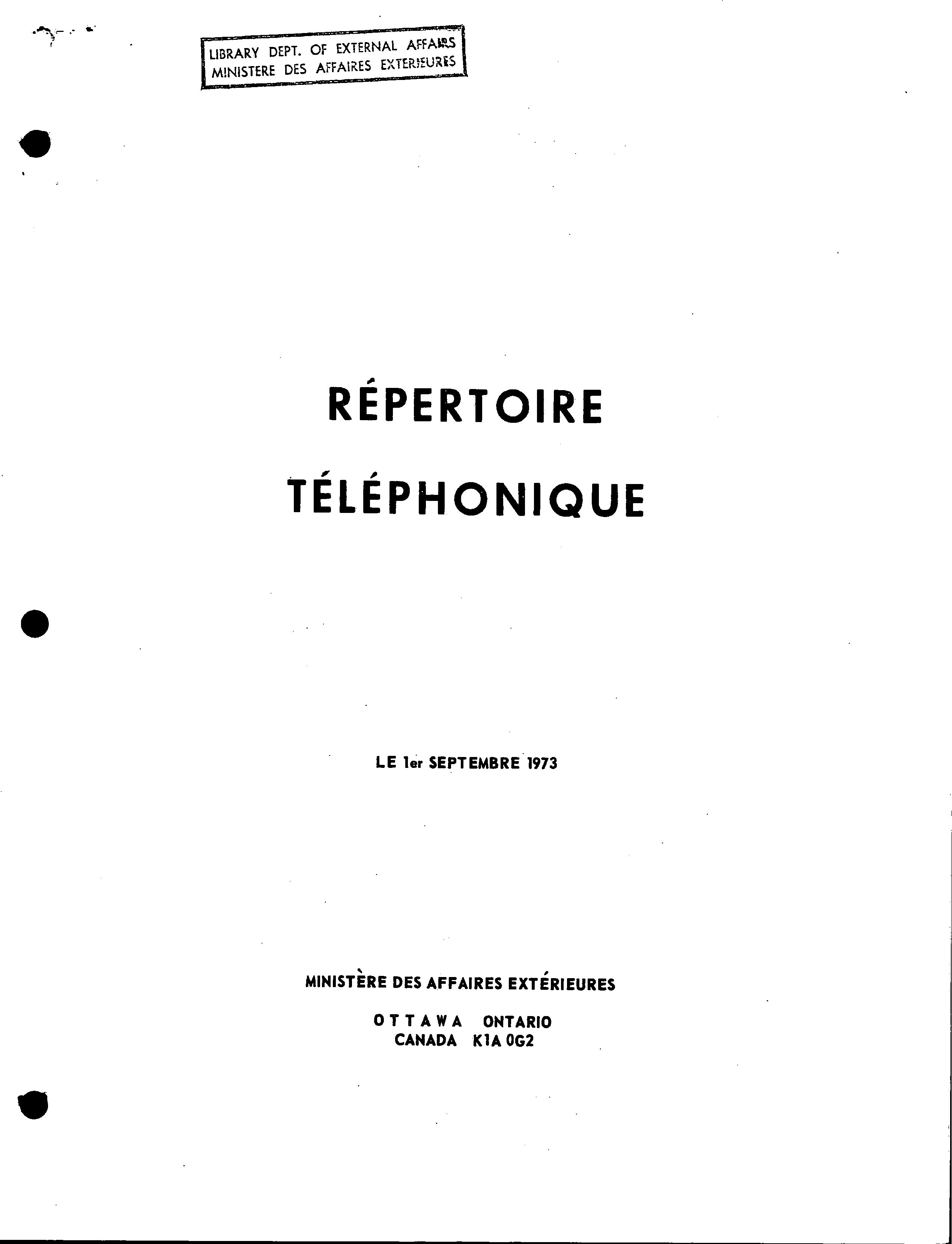 Répertoire téléphonique / Ministère des affaires extérieures. -- : 1er mai 1973