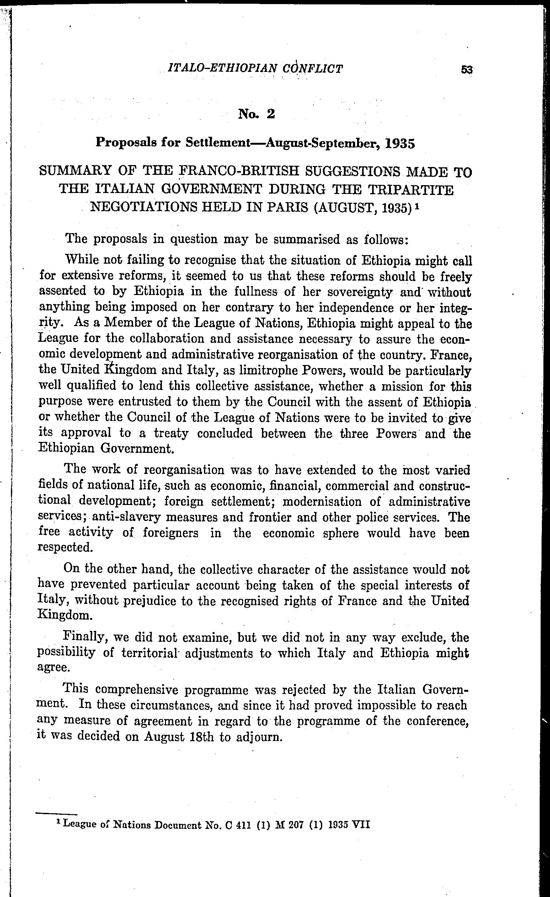 The Council of the League appointed a Committee to make a general examination of Italo-Ethiopian relations and to seek for a pacific settlement.