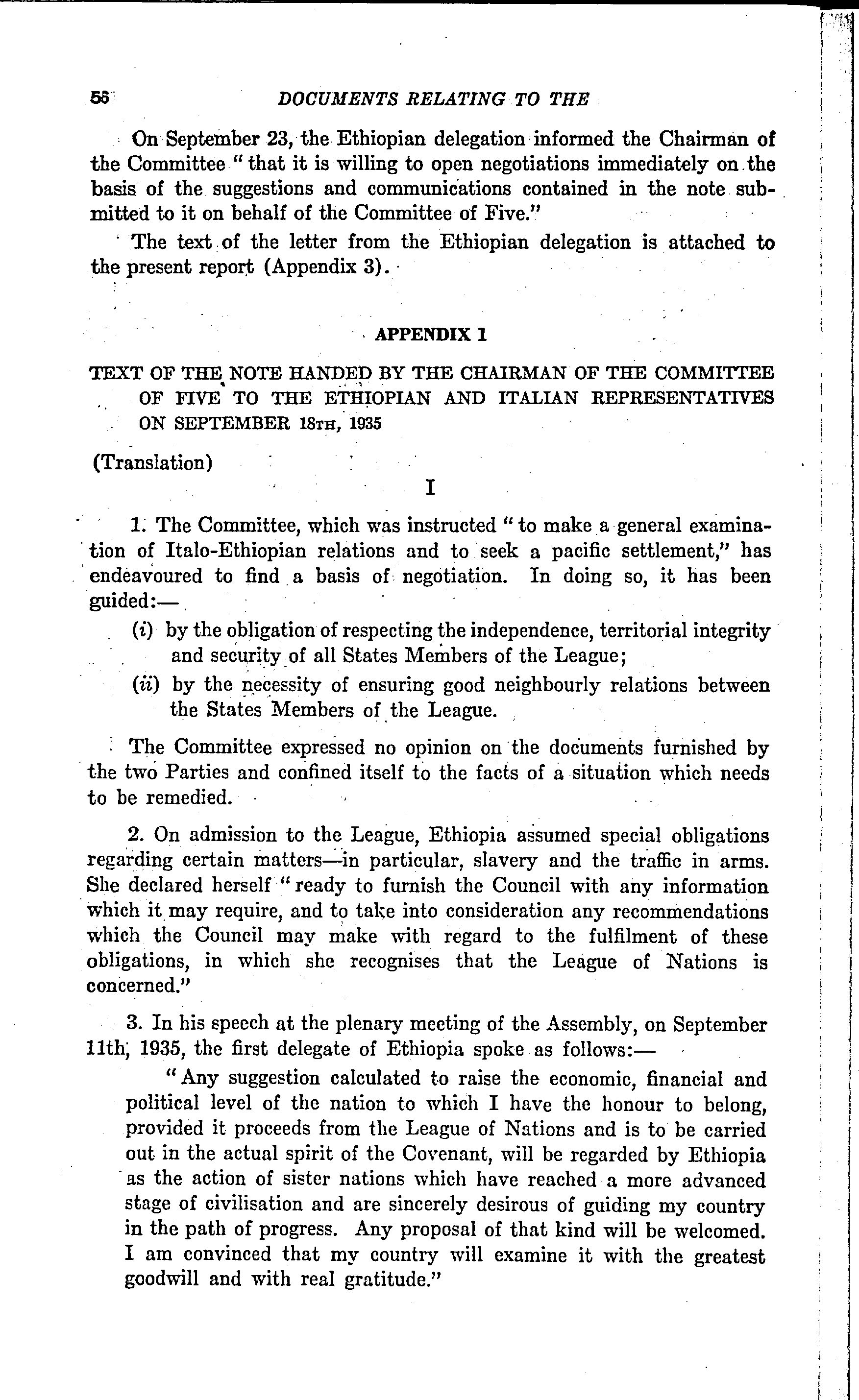 The Council of the League appointed a Committee to make a general examination of Italo-Ethiopian relations and to seek for a pacific settlement.