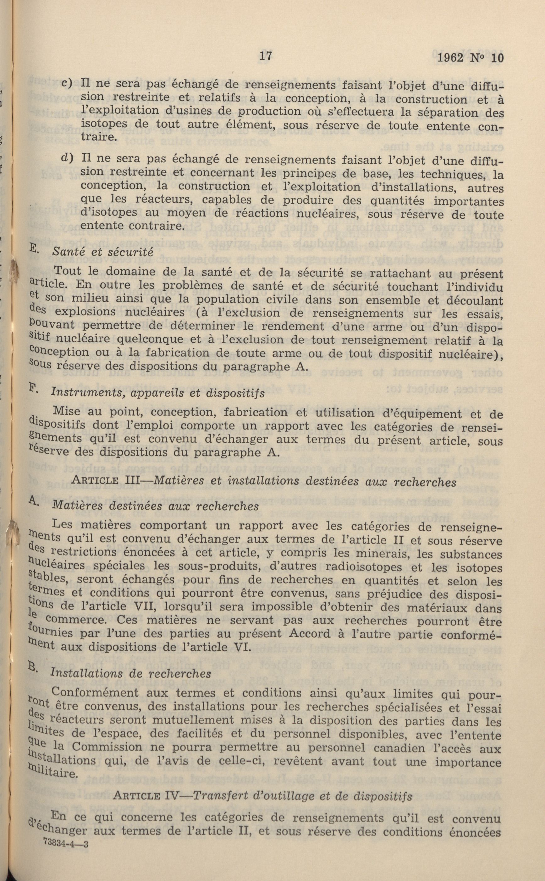 Énergie atomique : coopération concernant les emplois civils : modification de l'Accord du 15 juin 1955 entre le Canada et les États-Unis d'Amérique.