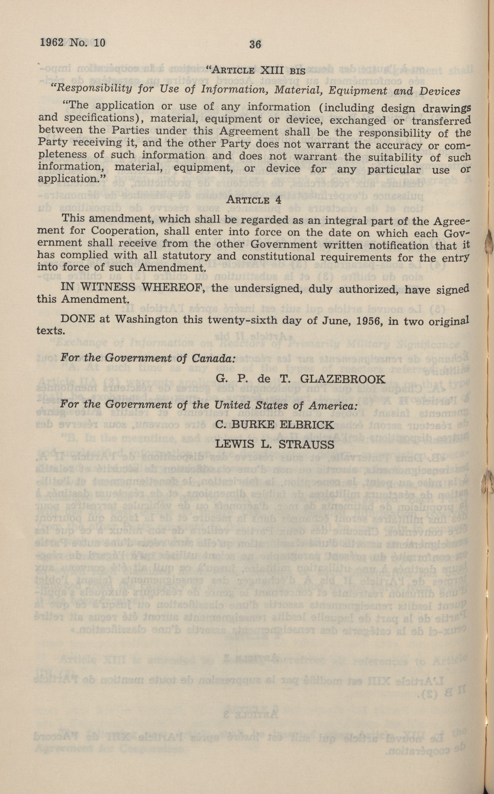 Atomic energy : co-operation in civil uses of atomic energy : amendment to the Agreement of June 15, 1955 between Canada and the United States of America = L'énergie atomique : coopération concernant les emplois civils : modificiation de l'Accord du 15 juin 1955 entre le Canada et les États-Unis d'Amérique. - Published