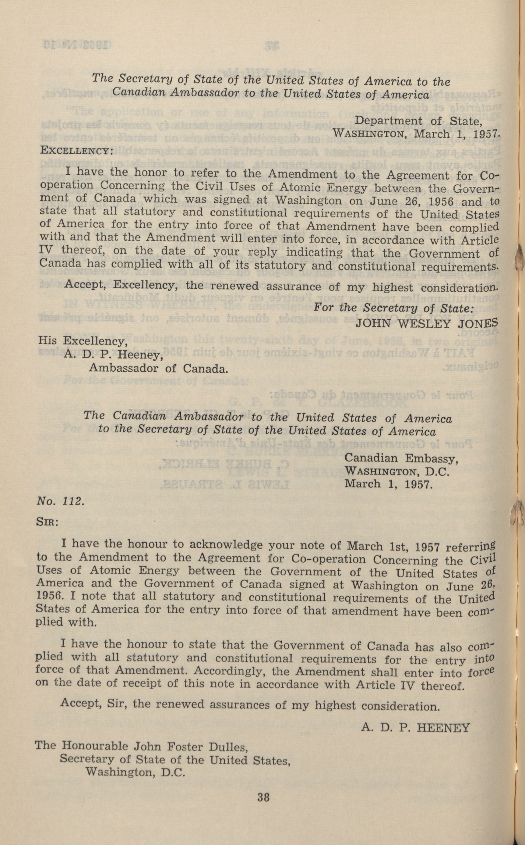 Atomic energy : co-operation in civil uses of atomic energy : amendment to the Agreement of June 15, 1955 between Canada and the United States of America =