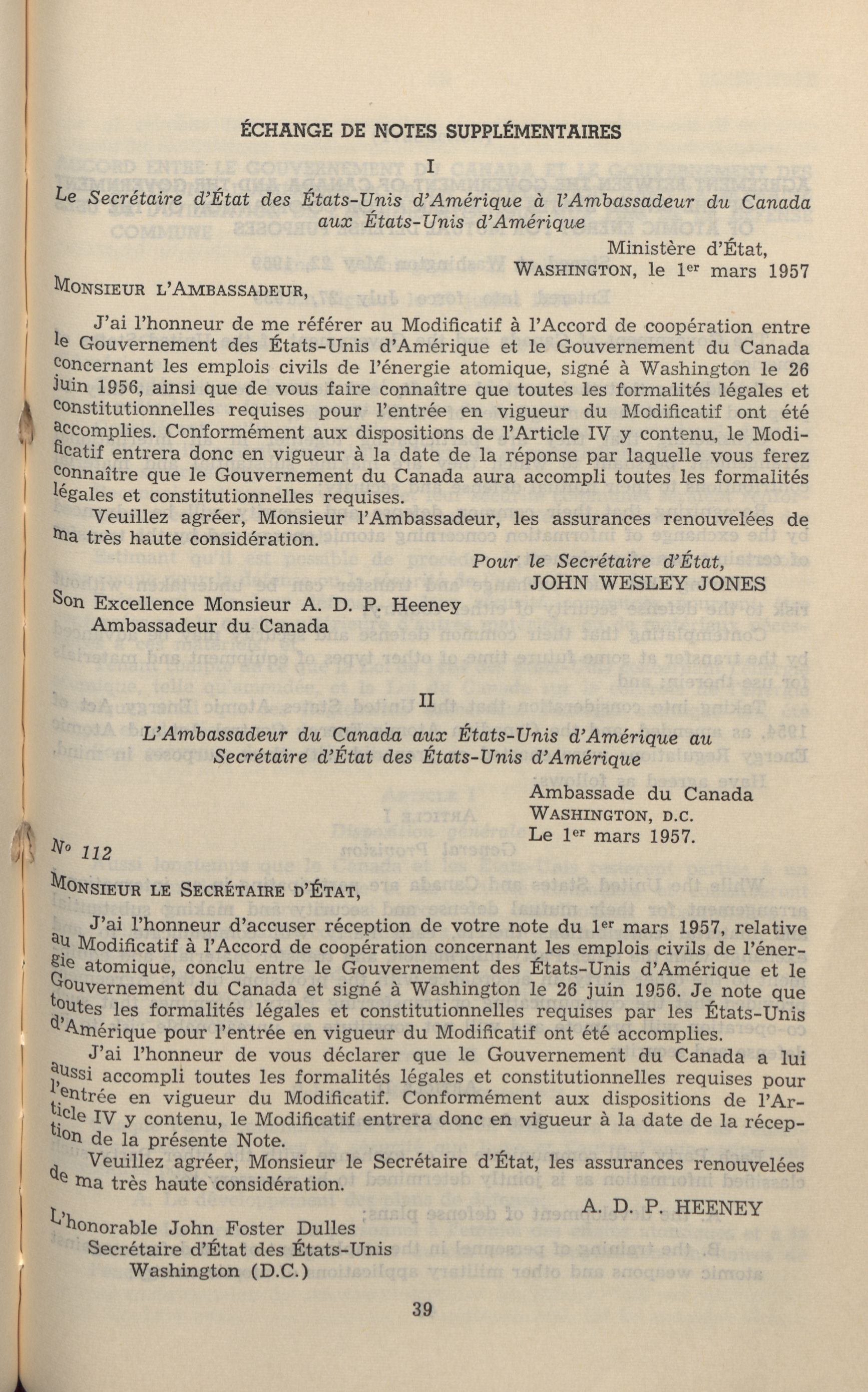Atomic energy : co-operation in civil uses of atomic energy : amendment to the Agreement of June 15, 1955 between Canada and the United States of America = L'énergie atomique : coopération concernant les emplois civils : modificiation de l'Accord du 15 juin 1955 entre le Canada et les États-Unis d'Amérique. - Adresse bibliographique