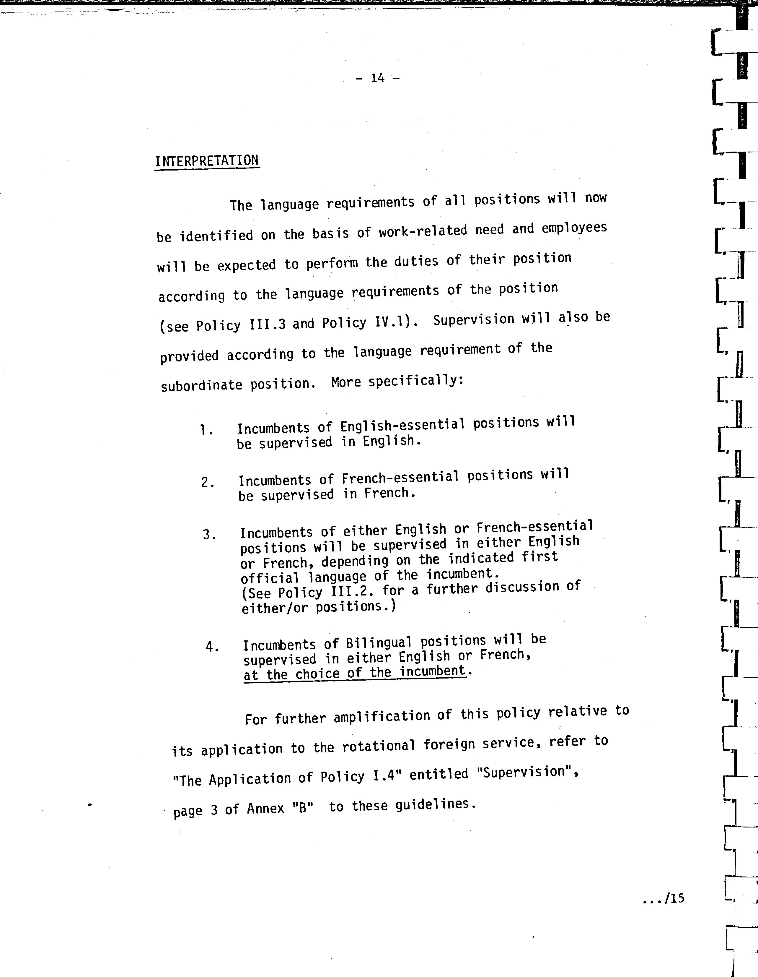 Lignes directrices de mise en oeuvre des langues officielles au Ministère des affaires extérieures.