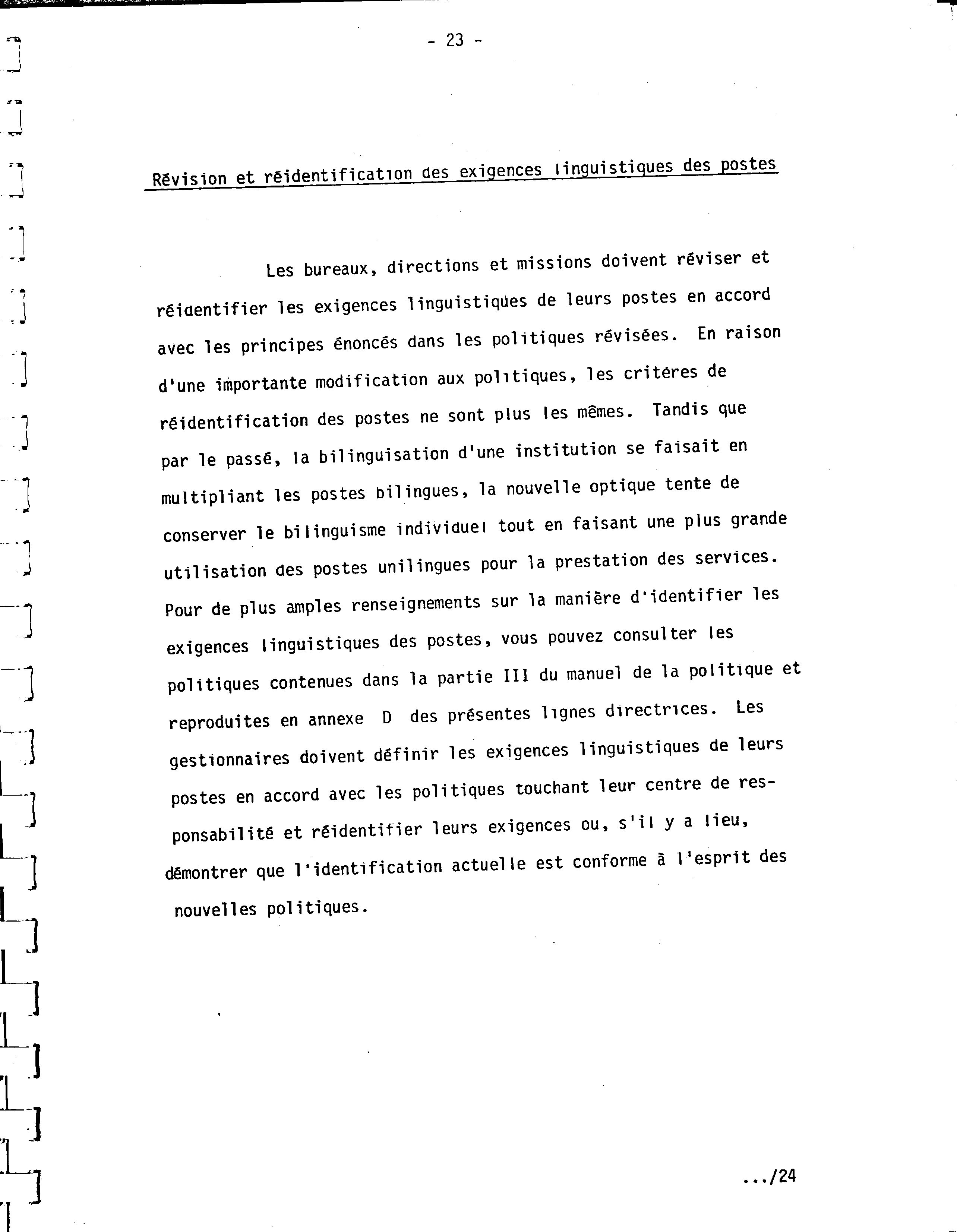 Lignes directrices de mise en oeuvre des langues officielles au Ministère des affaires extérieures.