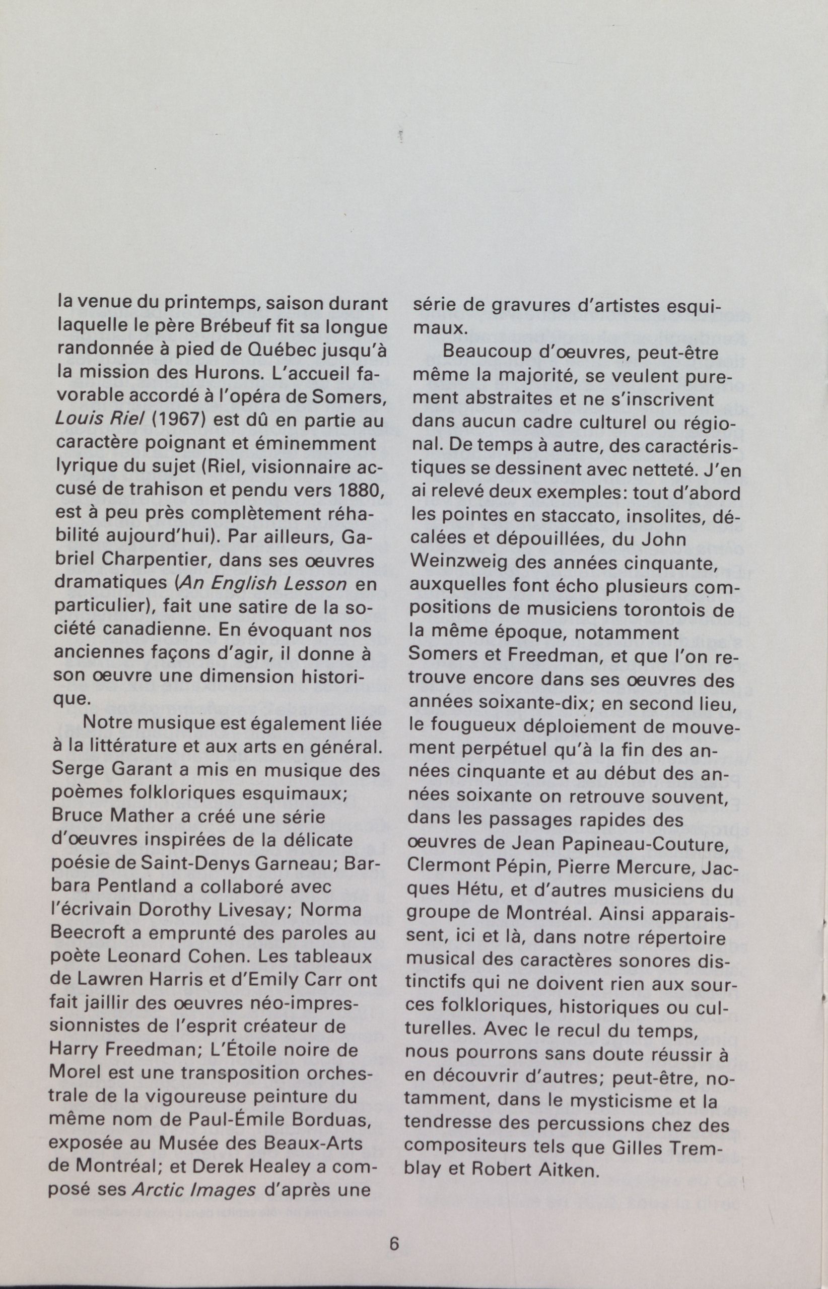 La musique au Canada / texte tiré de l'introduction de John Beckwith à MUSICANADA : présence de la musique canadienne contemporaine (traduction). -- : Documents no 6 (1979)