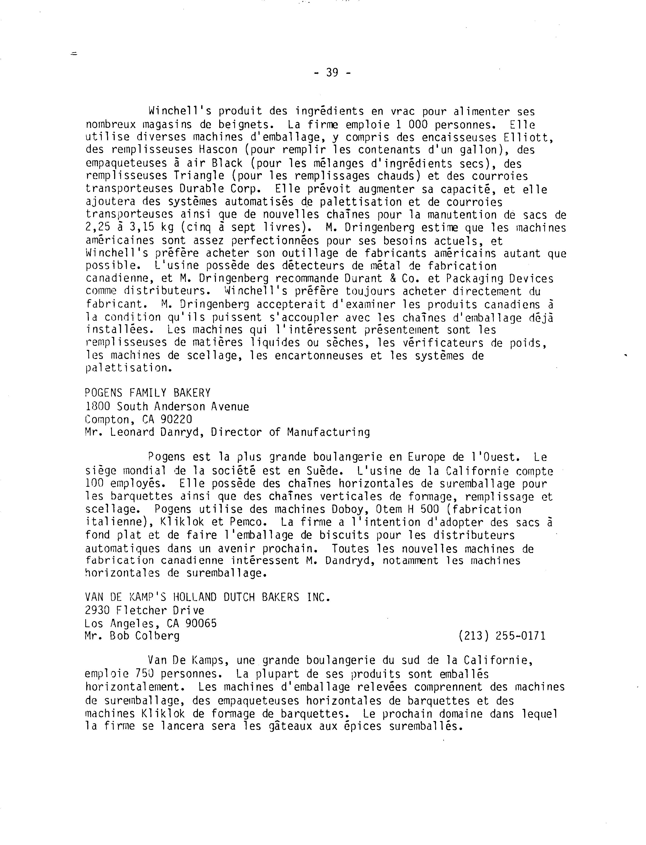 Publié aussi en anglais sous le titre: The market potential for Canadian manufactured packaging machinery and systems in California.
