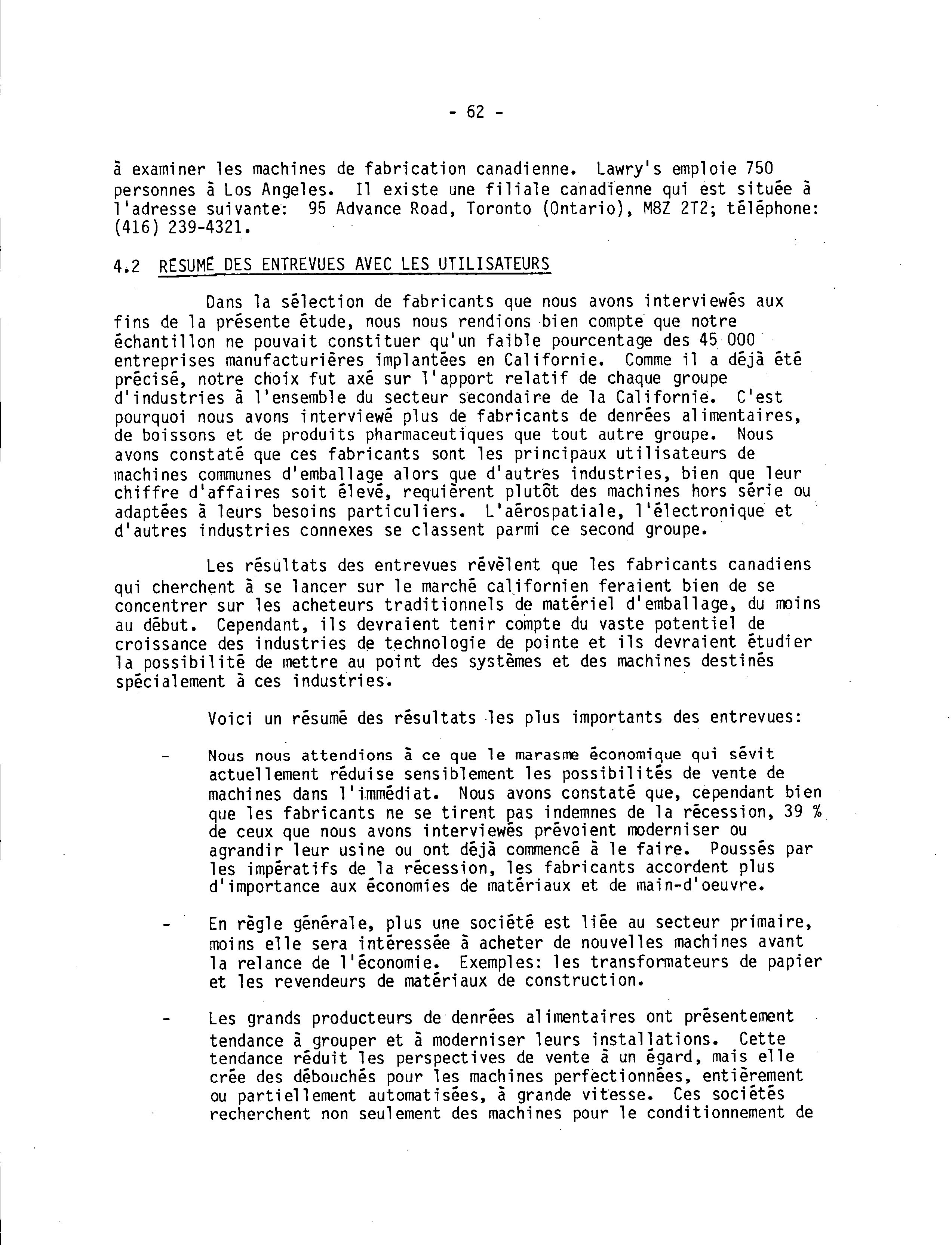 Publié aussi en anglais sous le titre: The market potential for Canadian manufactured packaging machinery and systems in California.