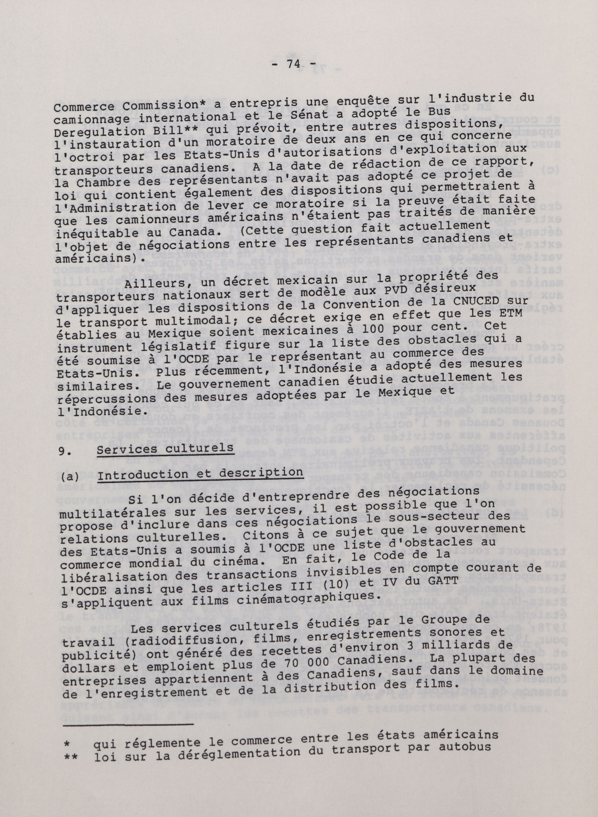 Groupe de travail sur le commerce des services : rapport de fond. - Adresse bibliographique