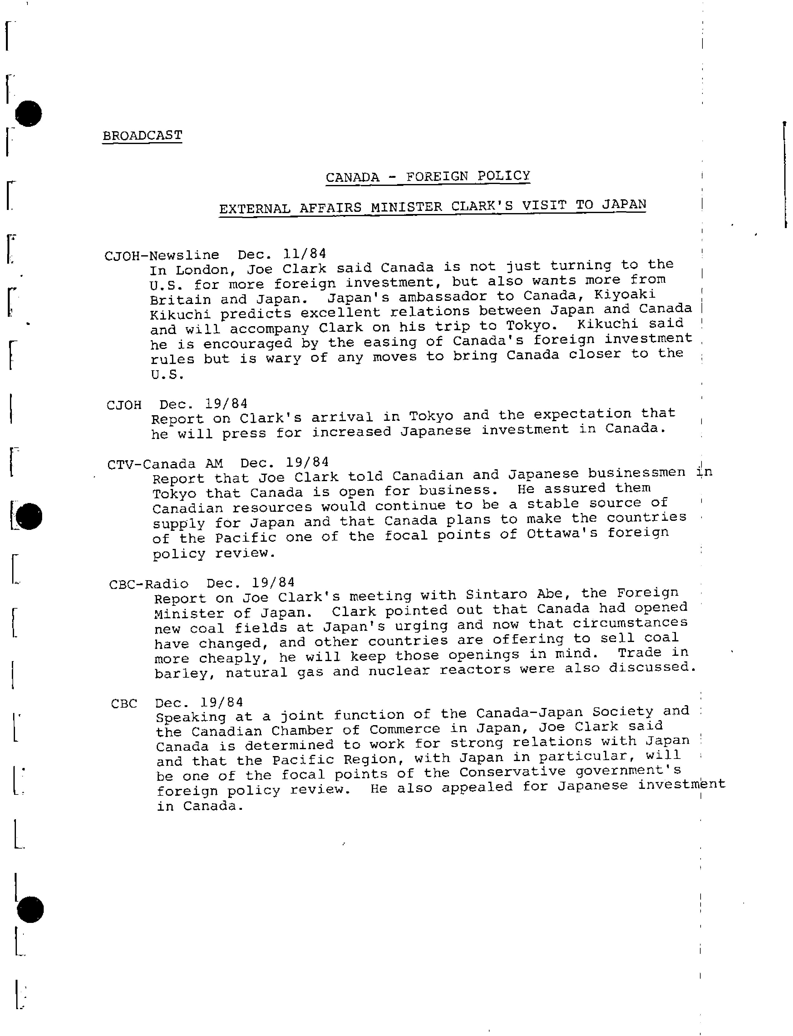 Summary of digests from English language media / External Affairs Canada. 1985