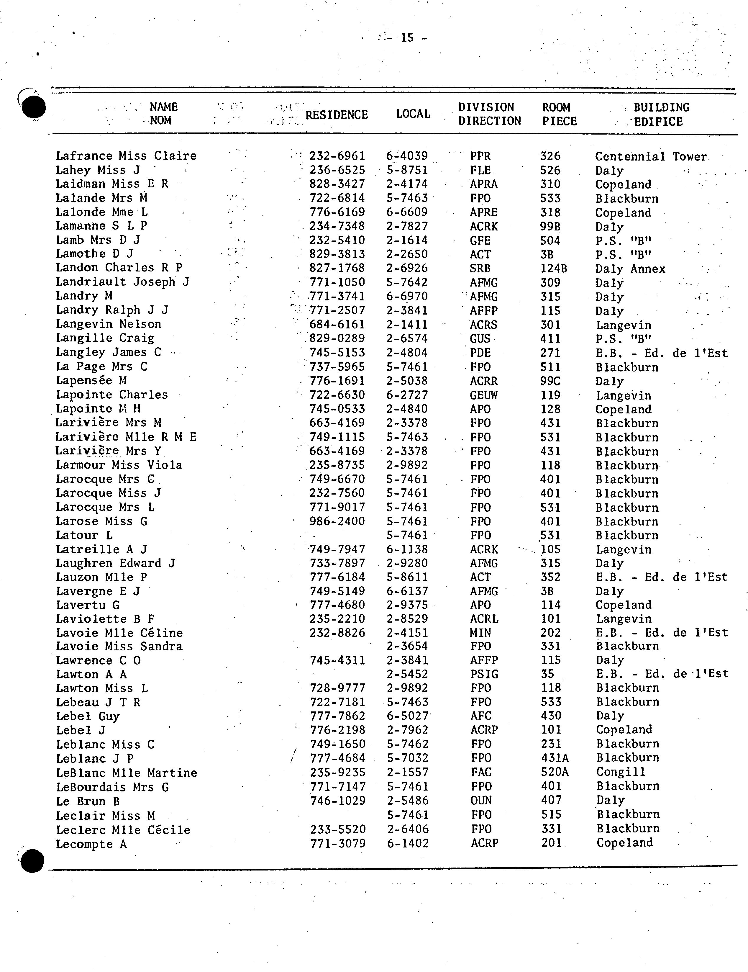 Staff directory = Répertoire du personnel / Department of External Affairs. 1970/72