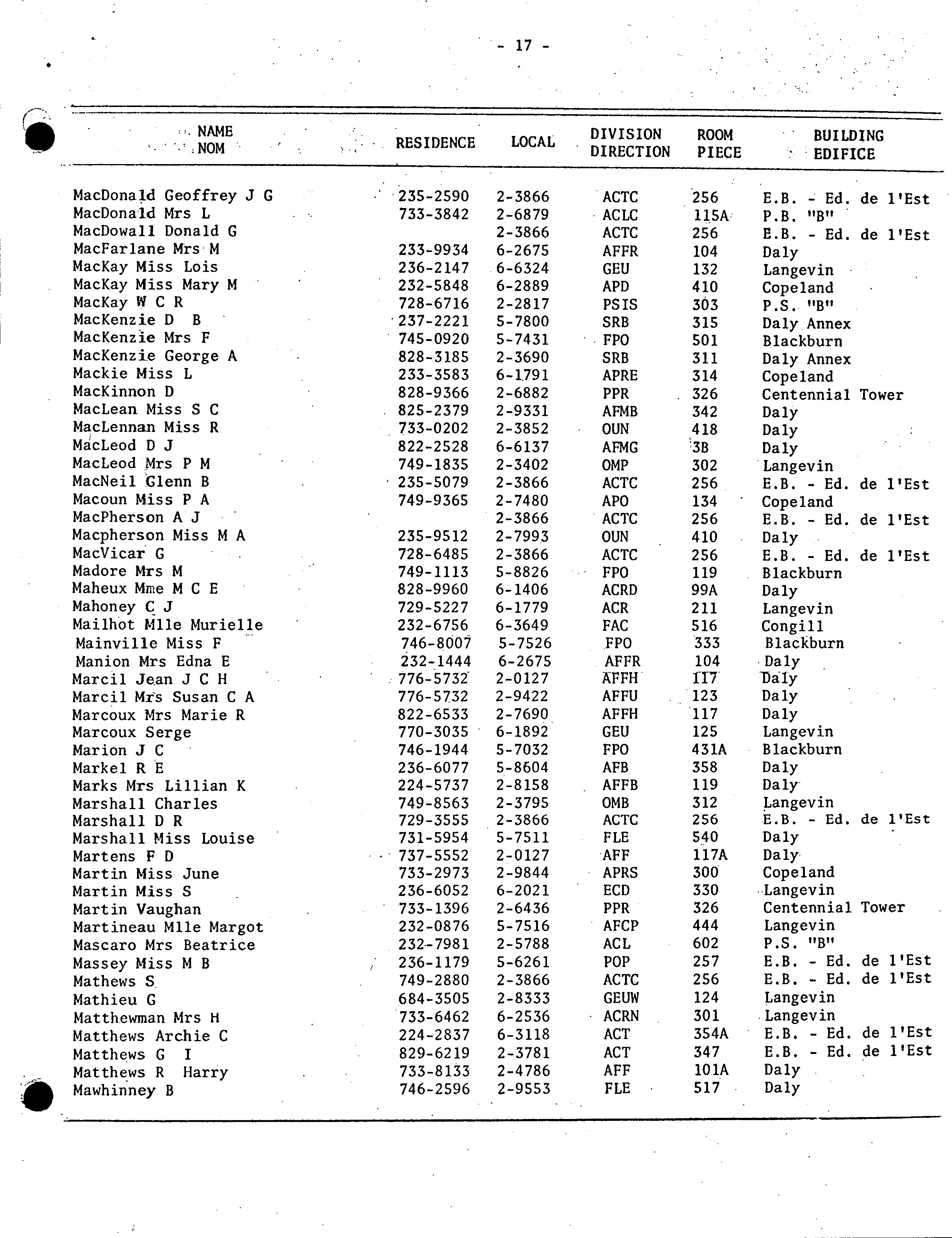 Staff directory = Répertoire du personnel / Department of External Affairs. 1970/72