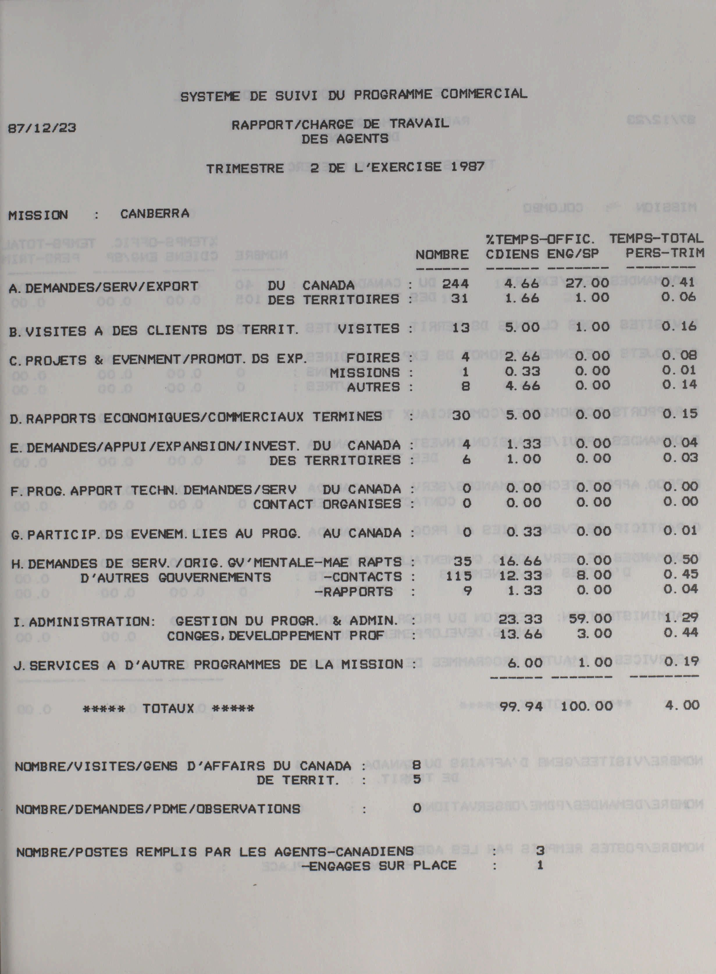 Trade and Industrial Development Program quarterly results and activity report = Programme d'expansion commerciale et industrielle rapport trimestriel des activités et des resultats.