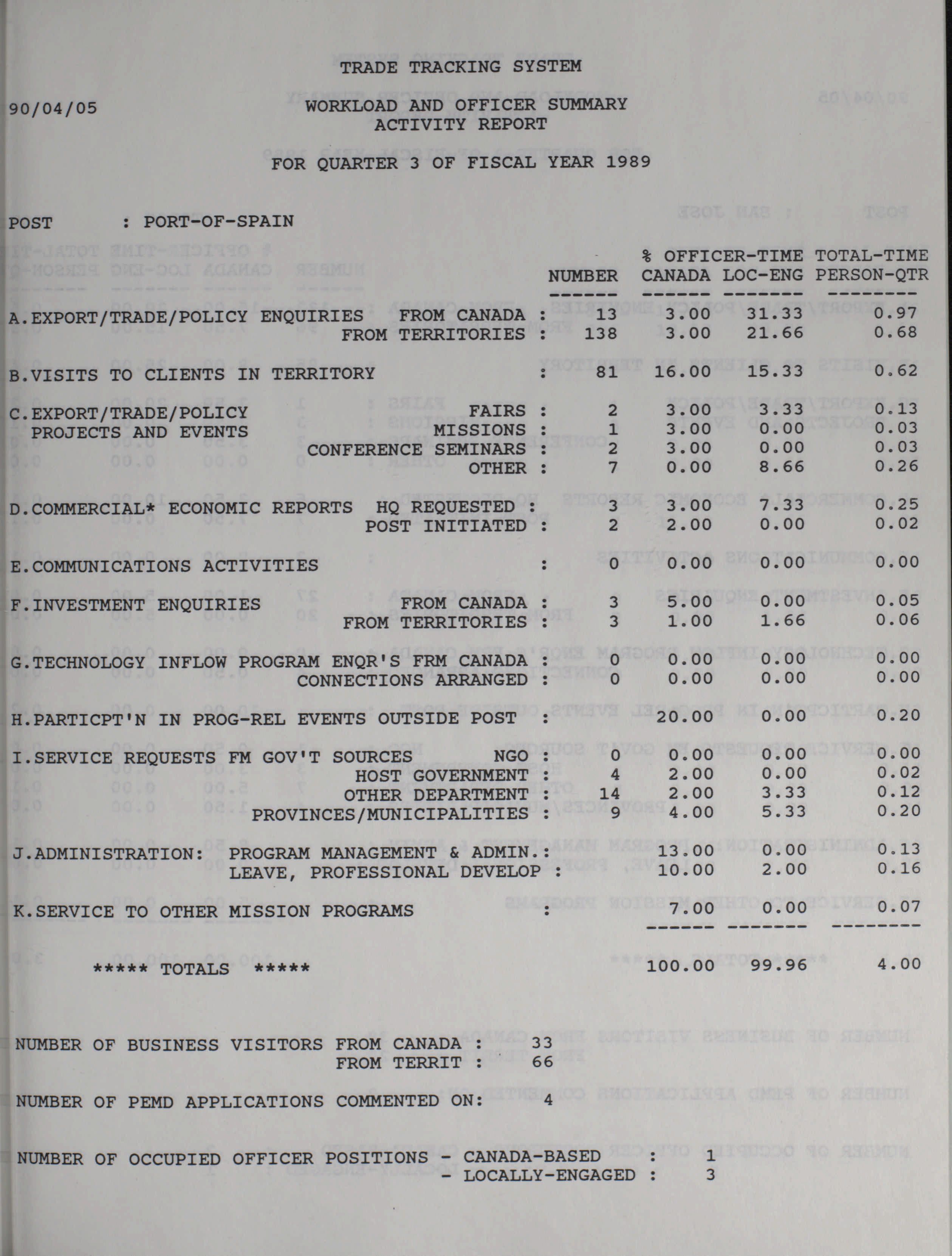 Trade and Industrial Development Program quarterly results and activity report = Programme d'expansion commerciale et industrielle rapport trimestriel des activités et des resultats.
