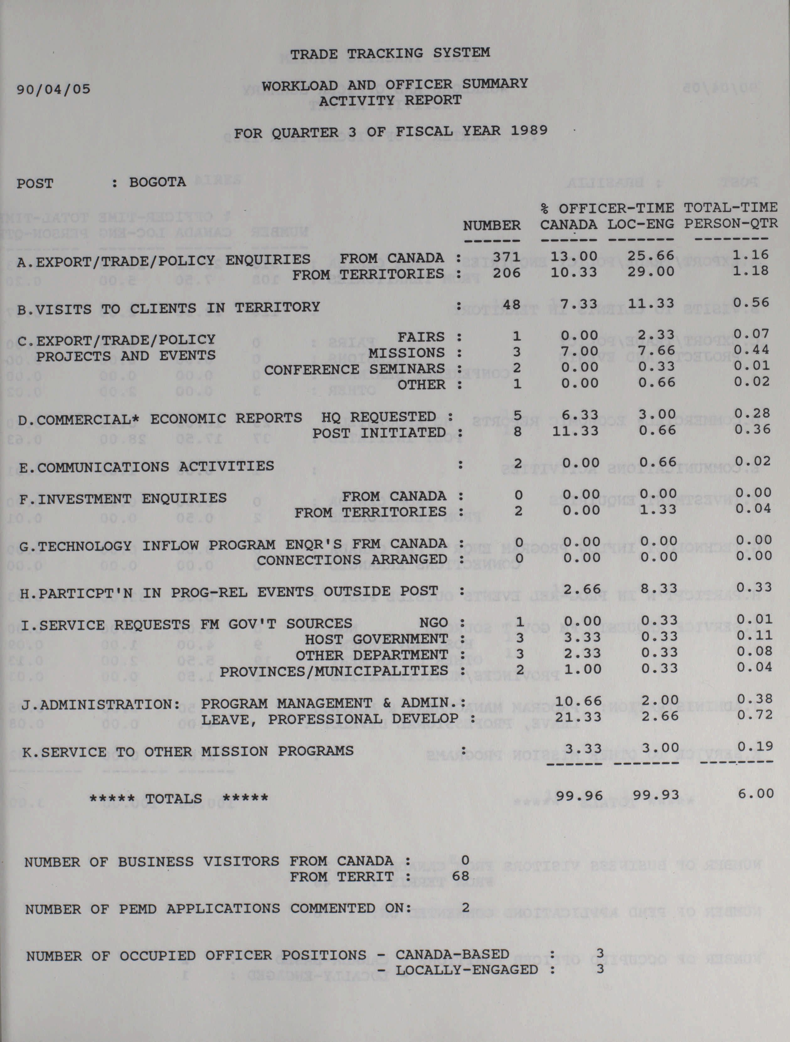 Trade and Industrial Development Program quarterly results and activity report = Programme d'expansion commerciale et industrielle rapport trimestriel des activités et des resultats.