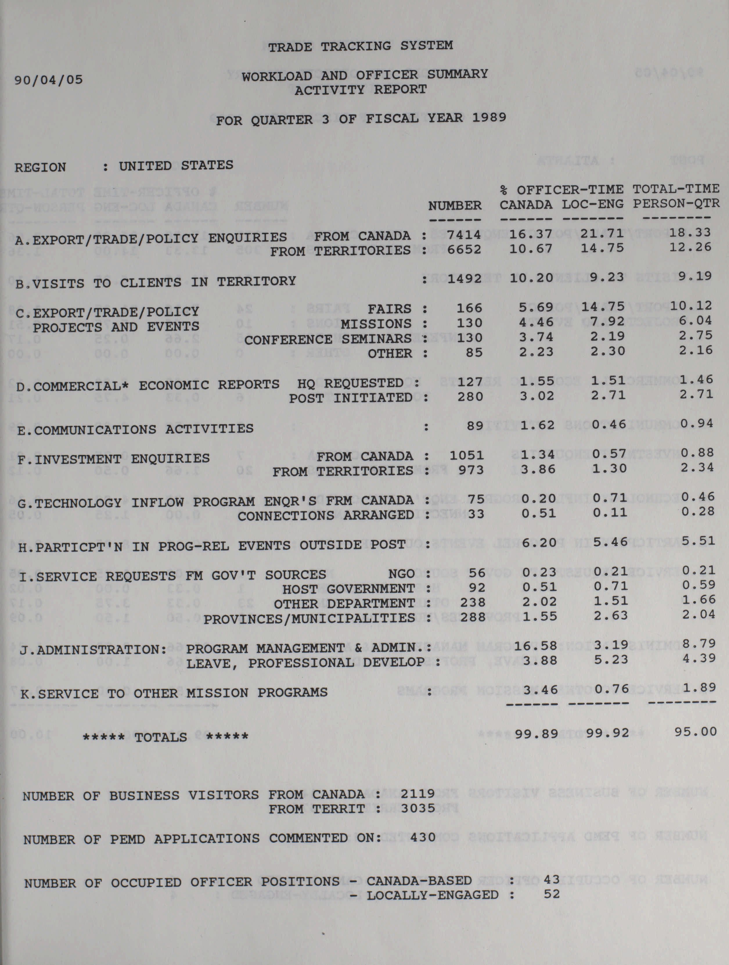 Trade and Industrial Development Program quarterly results and activity report = Programme d'expansion commerciale et industrielle rapport trimestriel des activités et des resultats.