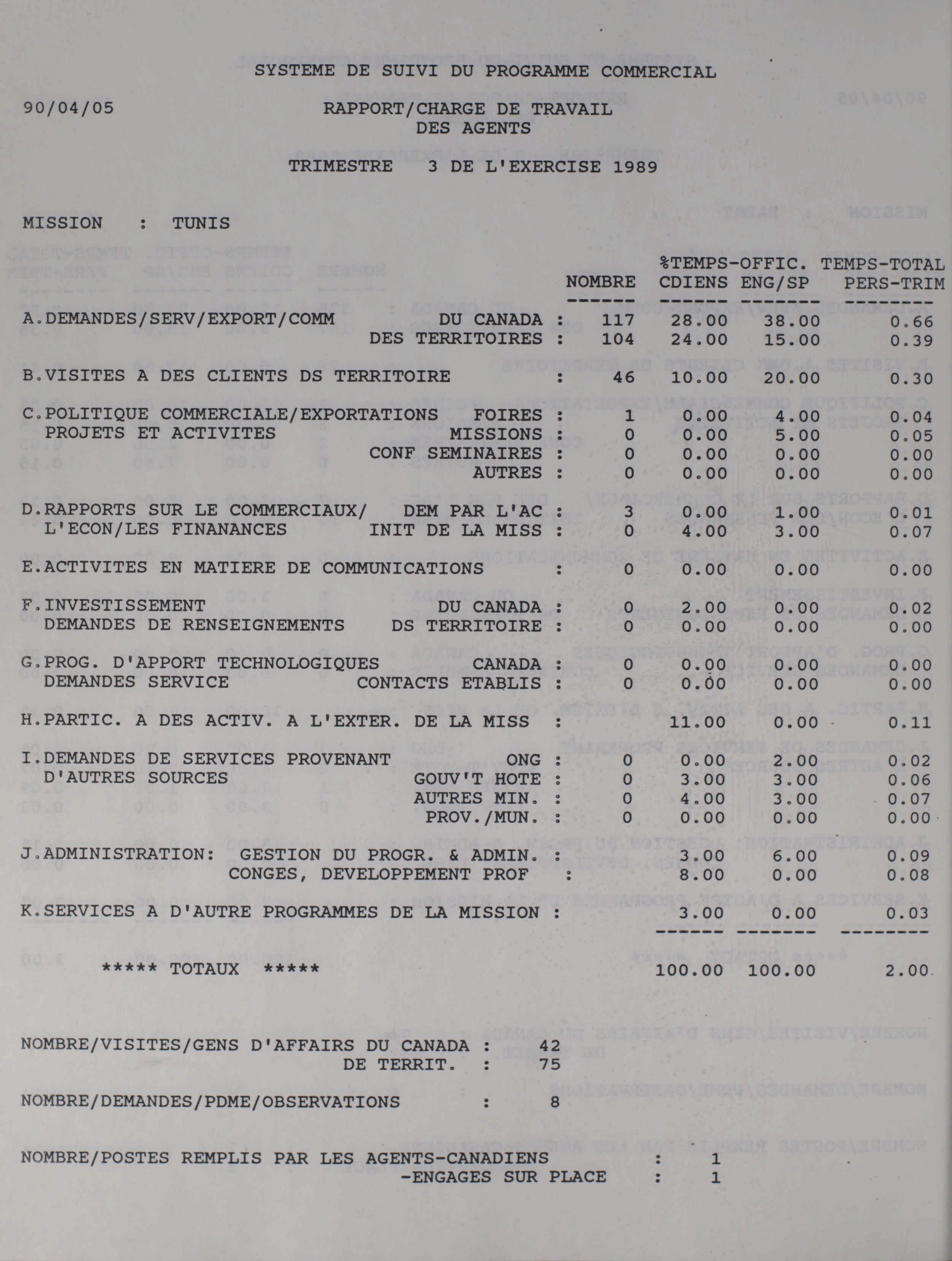 Trade and Industrial Development Program quarterly results and activity report = Programme d'expansion commerciale et industrielle rapport trimestriel des activités et des resultats.