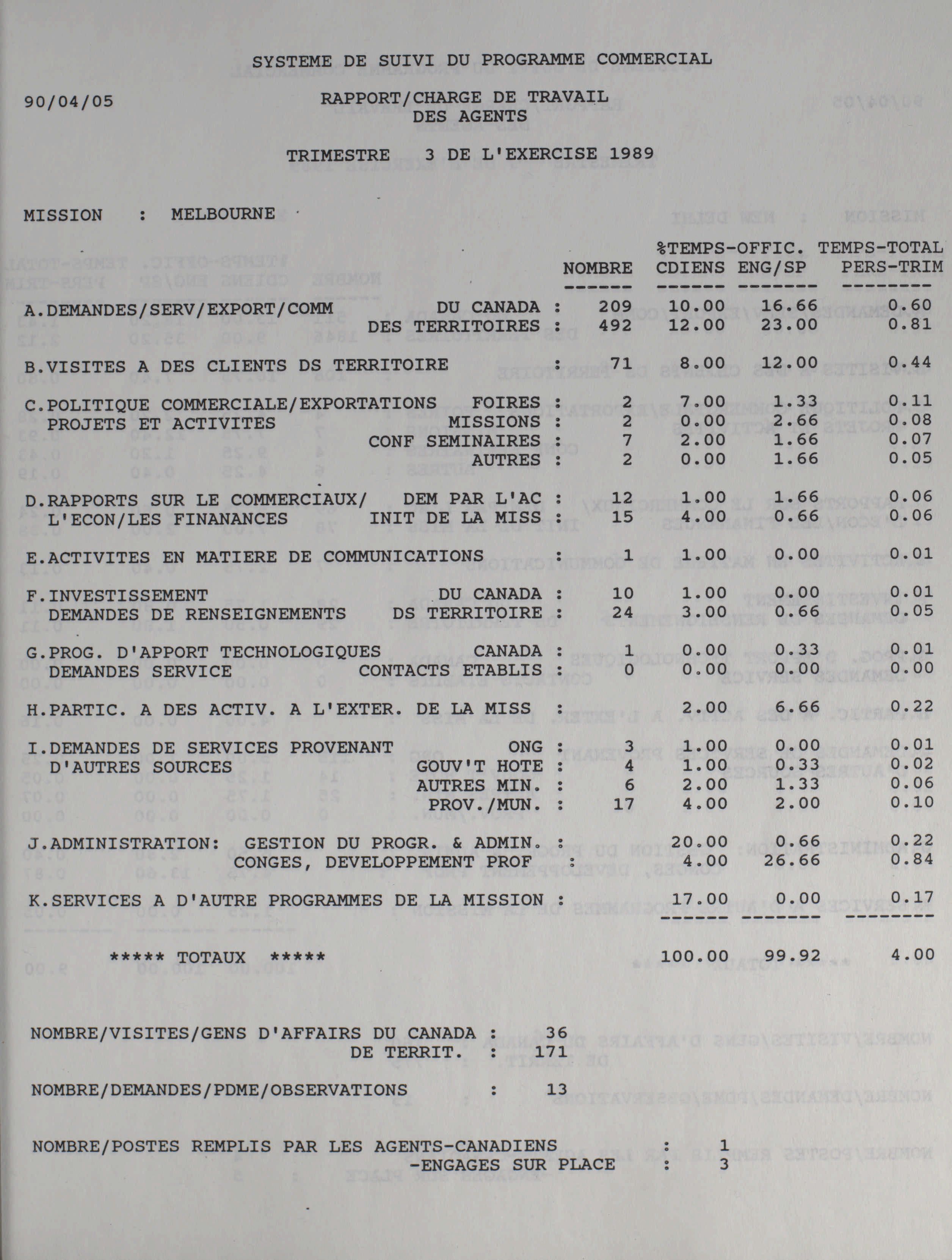 Trade and Industrial Development Program quarterly results and activity report = Programme d'expansion commerciale et industrielle rapport trimestriel des activités et des resultats.