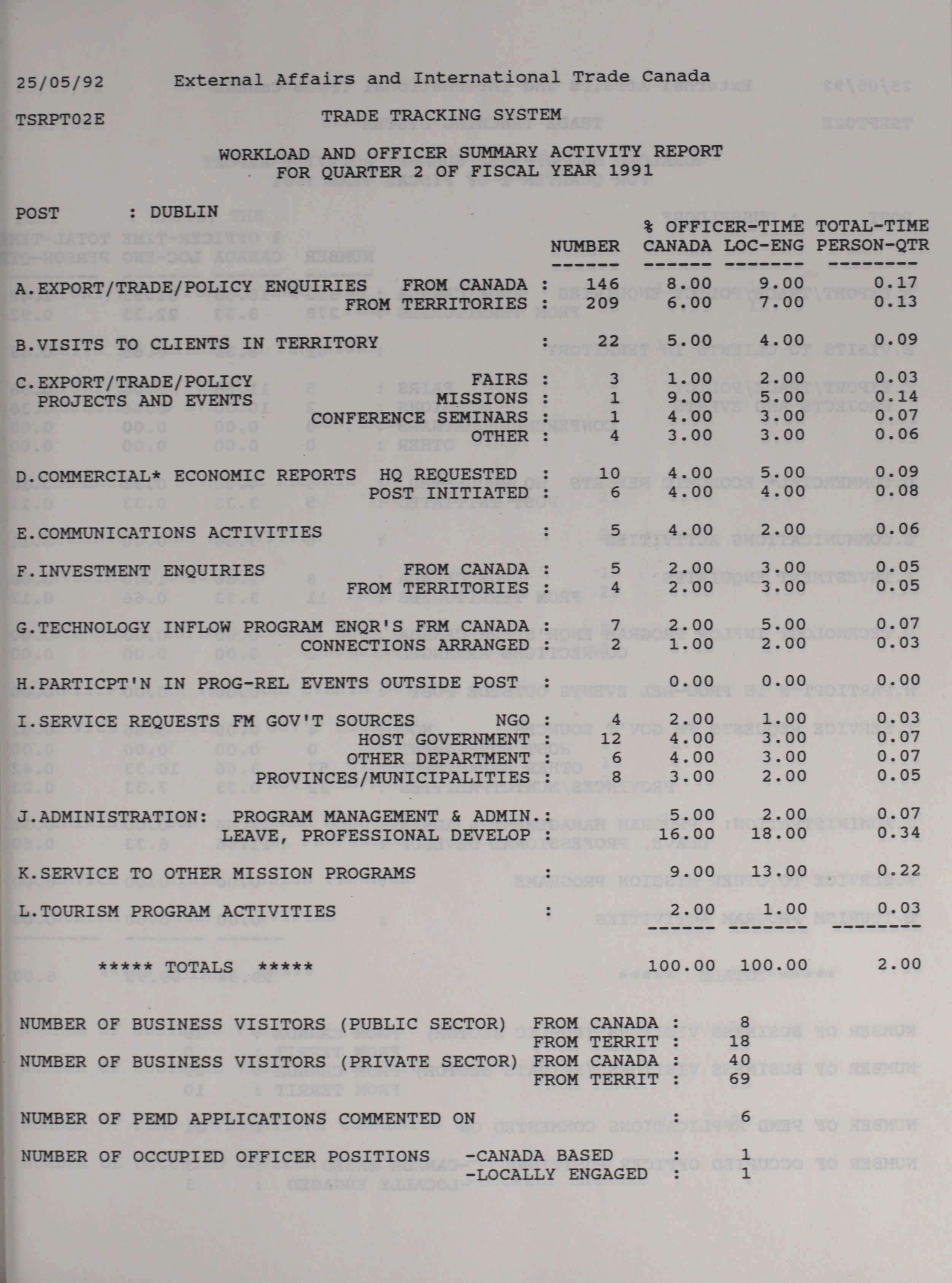 Trade and Industrial Development Program quarterly results and activity report = Programme d'expansion commerciale et industrielle rapport trimestriel des activités et des resultats.