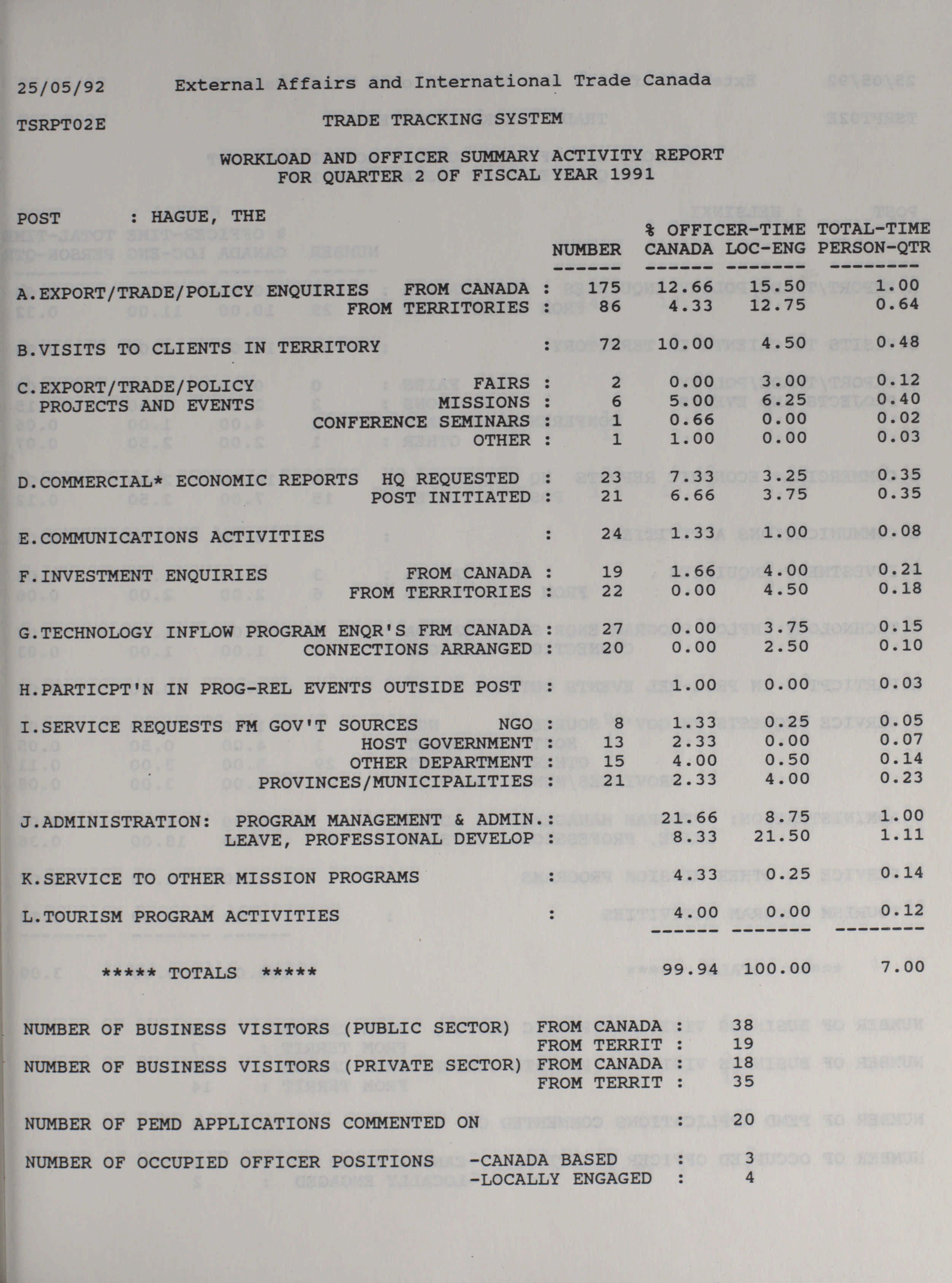 Trade and Industrial Development Program quarterly results and activity report = Programme d'expansion commerciale et industrielle rapport trimestriel des activités et des resultats.
