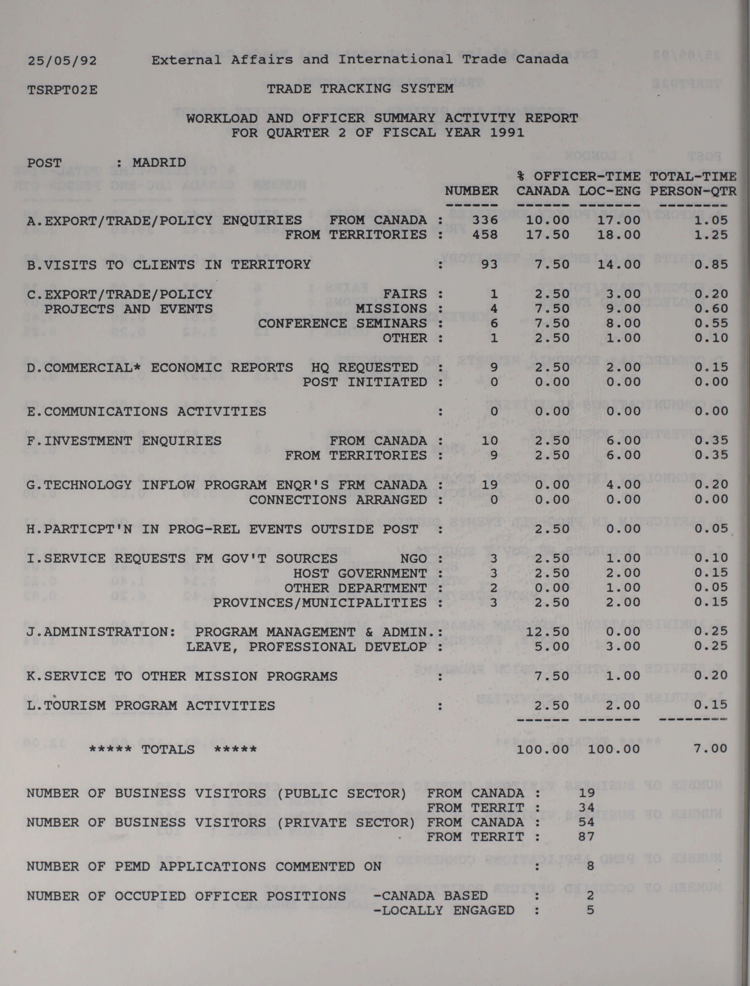 Trade and Industrial Development Program quarterly results and activity report = Programme d'expansion commerciale et industrielle rapport trimestriel des activités et des resultats.