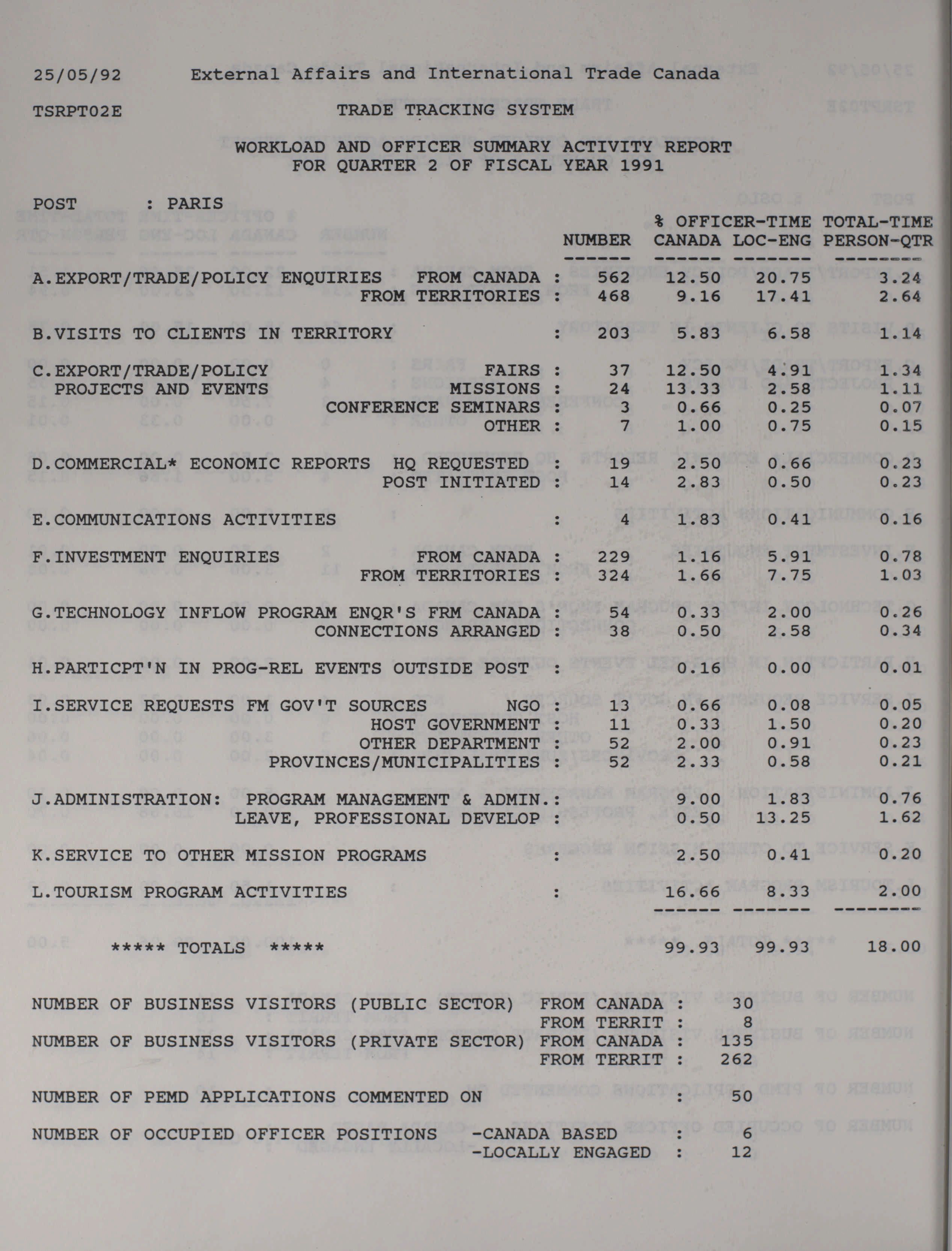 Trade and Industrial Development Program quarterly results and activity report = Programme d'expansion commerciale et industrielle rapport trimestriel des activités et des resultats.