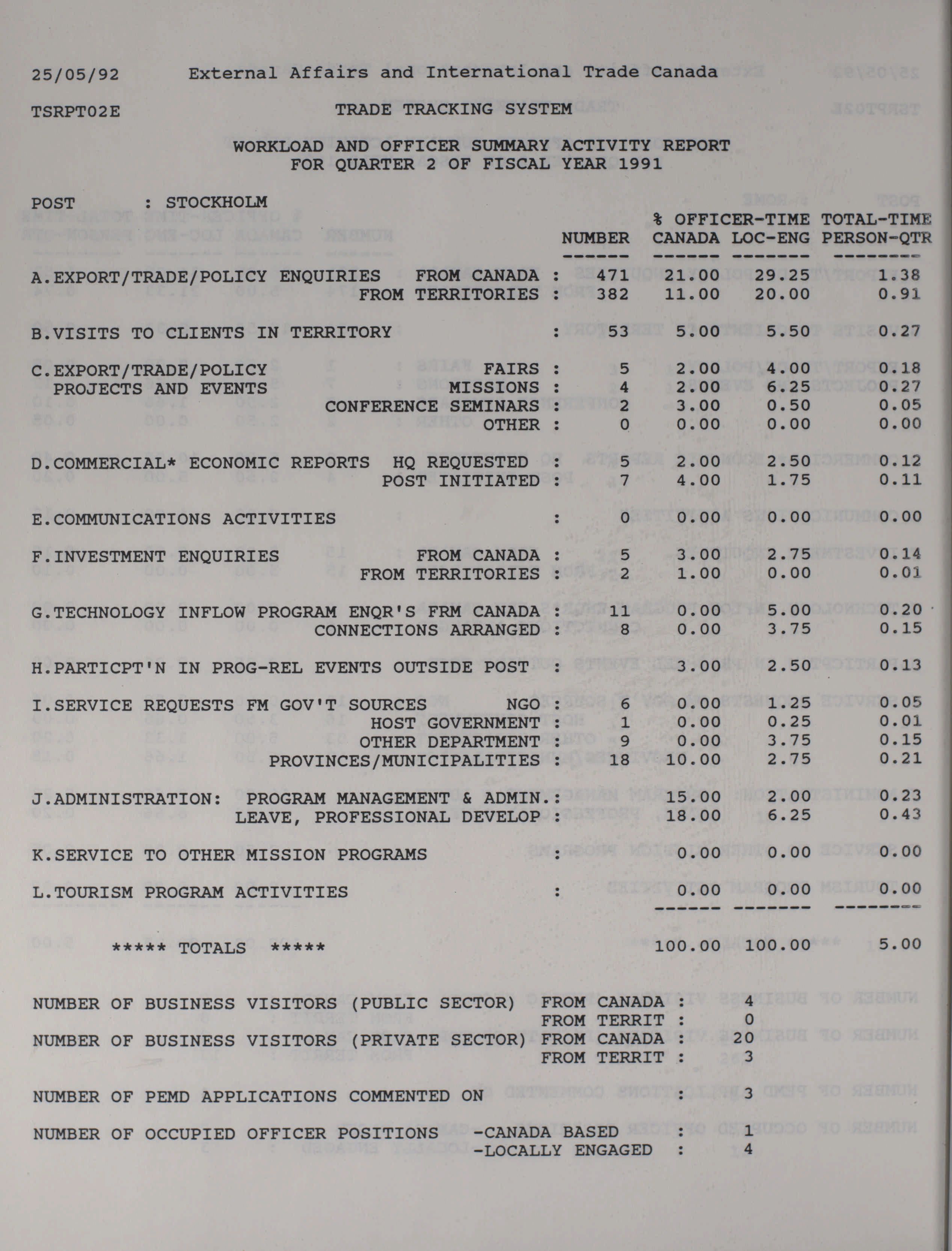 Trade and Industrial Development Program quarterly results and activity report = Programme d'expansion commerciale et industrielle rapport trimestriel des activités et des resultats.