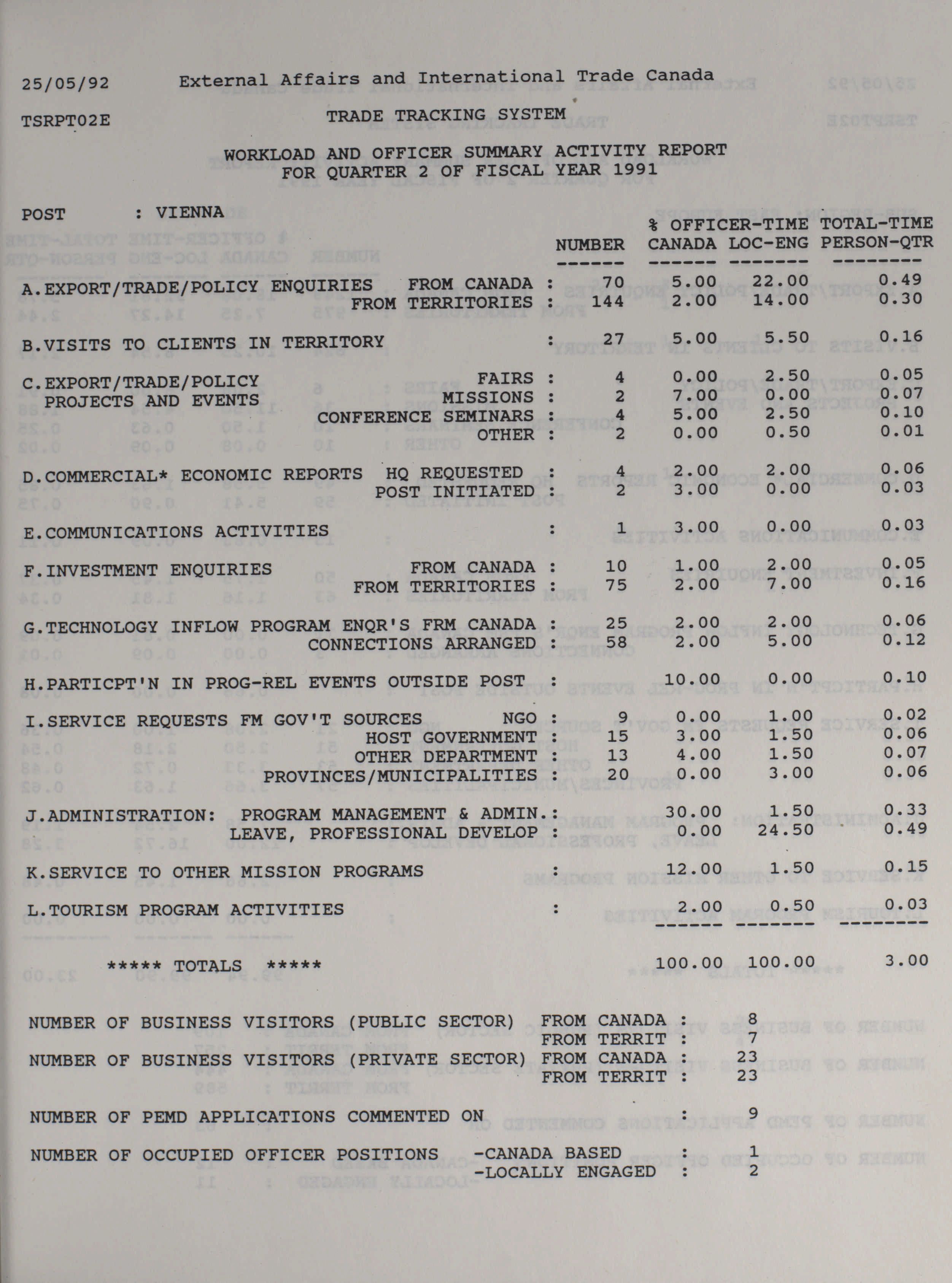 Trade and Industrial Development Program quarterly results and activity report = Programme d'expansion commerciale et industrielle rapport trimestriel des activités et des resultats.