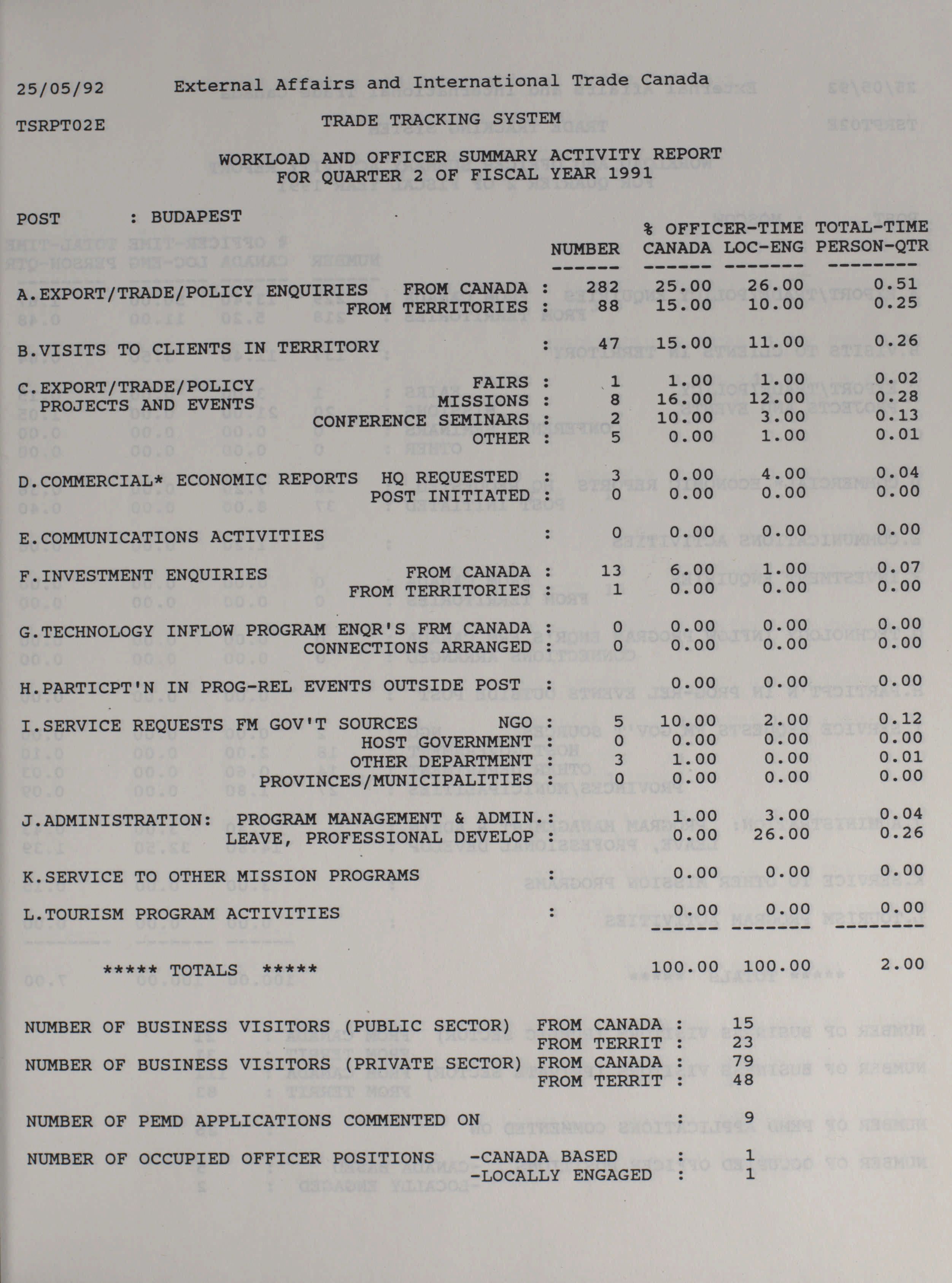 Trade and Industrial Development Program quarterly results and activity report = Programme d'expansion commerciale et industrielle rapport trimestriel des activités et des resultats.