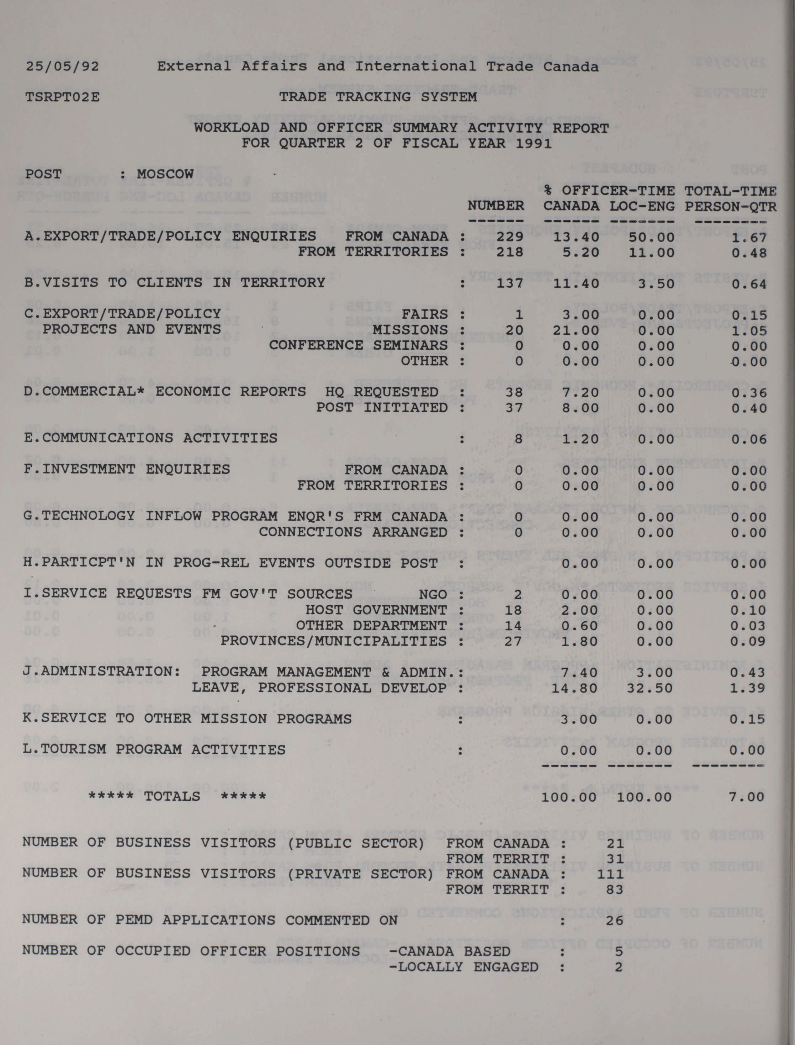 Trade and Industrial Development Program quarterly results and activity report = Programme d'expansion commerciale et industrielle rapport trimestriel des activités et des resultats.