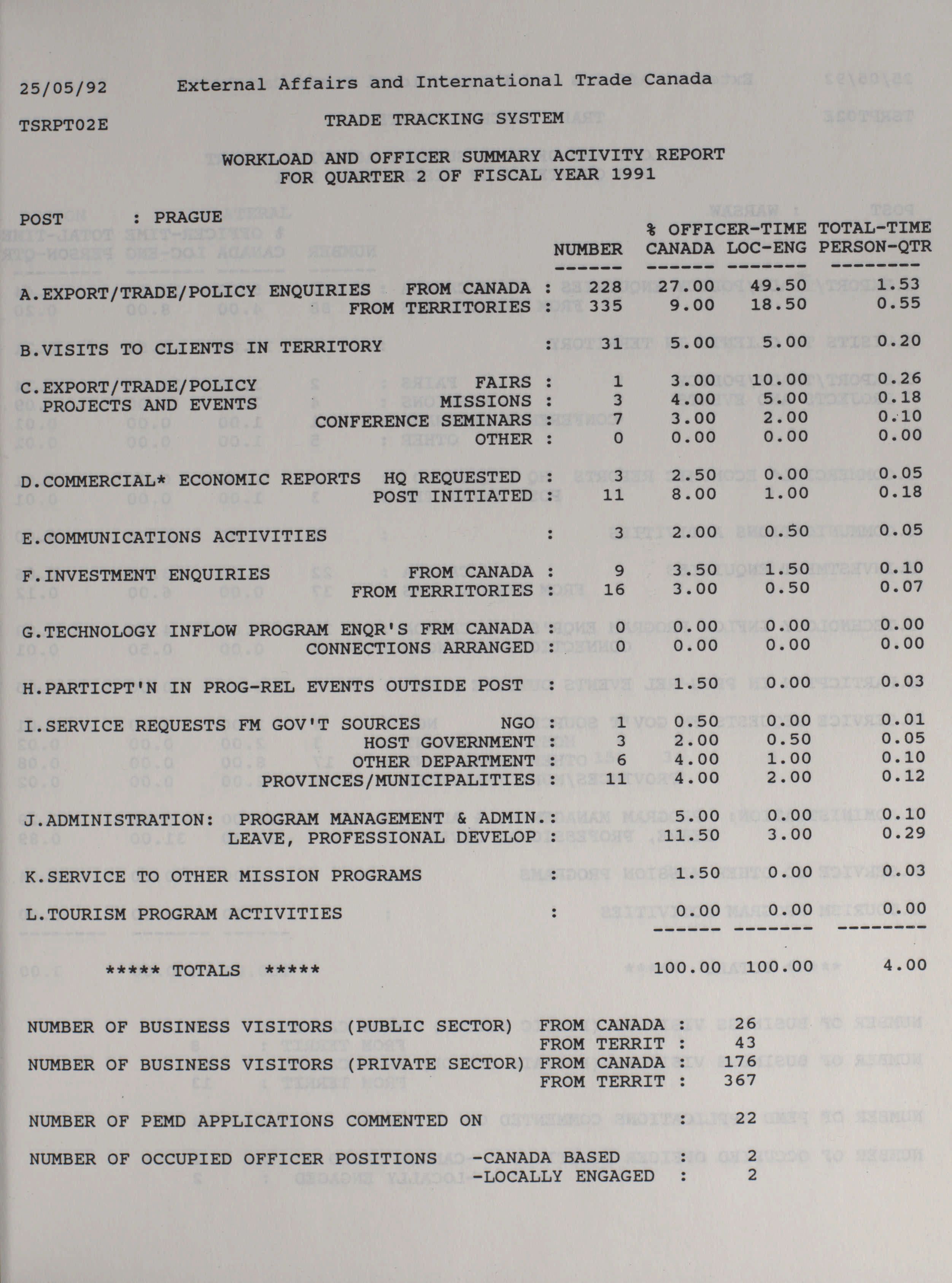 Trade and Industrial Development Program quarterly results and activity report = Programme d'expansion commerciale et industrielle rapport trimestriel des activités et des resultats.