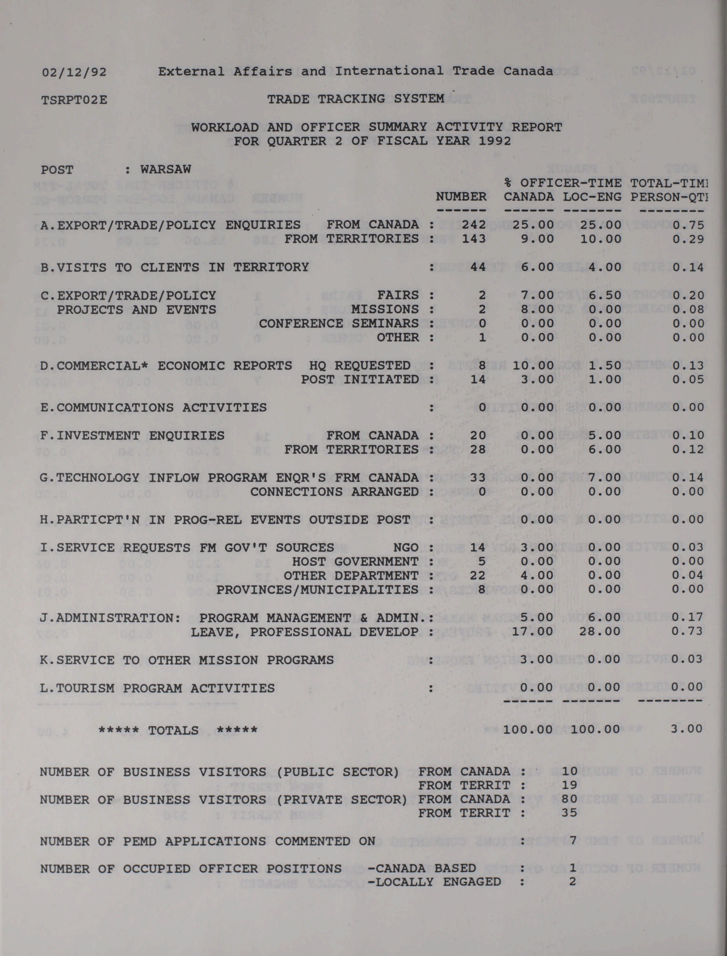 Trade and Industrial Development Program quarterly results and activity report = Programme d'expansion commerciale et industrielle rapport trimestriel des activités et des resultats.