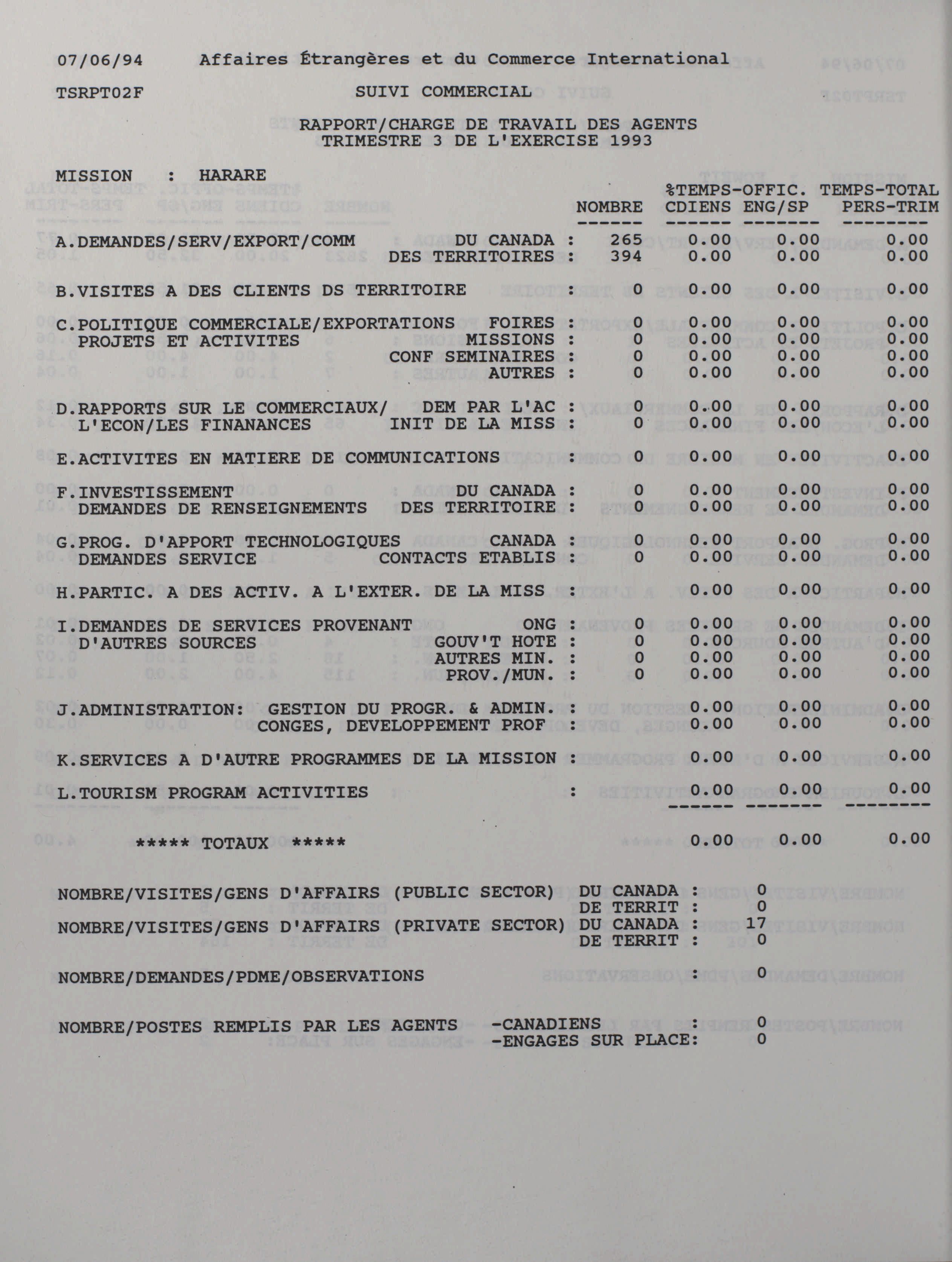 Trade and Industrial Development Program quarterly results and activity report = Programme d'expansion commerciale et industrielle rapport trimestriel des activités et des resultats.