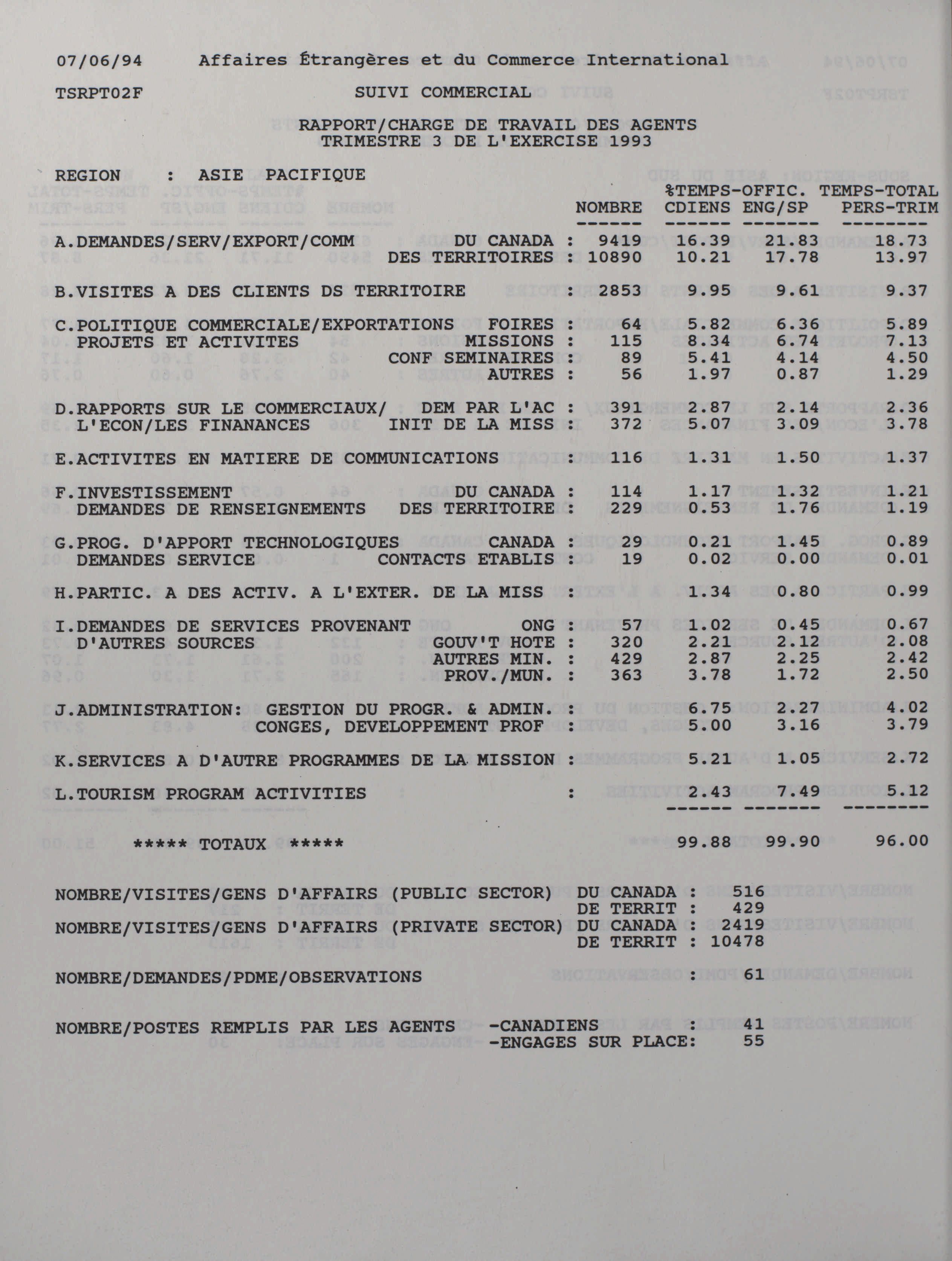 Trade and Industrial Development Program quarterly results and activity report = Programme d'expansion commerciale et industrielle rapport trimestriel des activités et des resultats.
