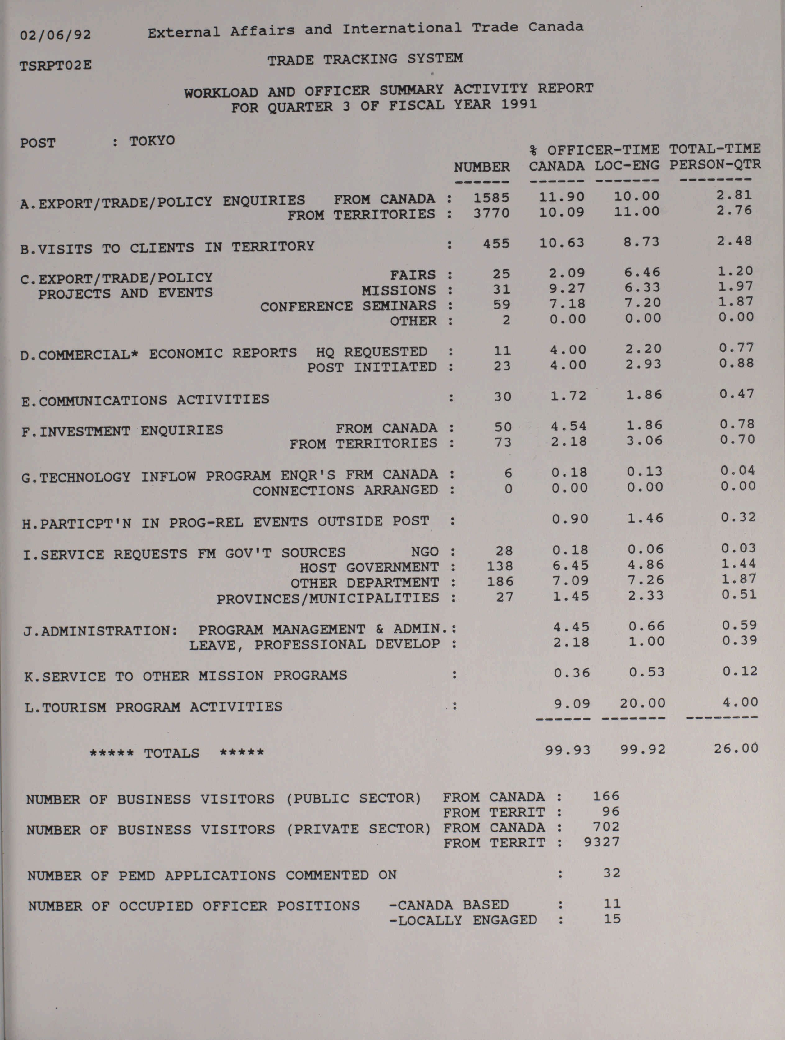Trade and Industrial Development Program quarterly results and activity report = Programme d'expansion commerciale et industrielle rapport trimestriel des activités et des resultats.