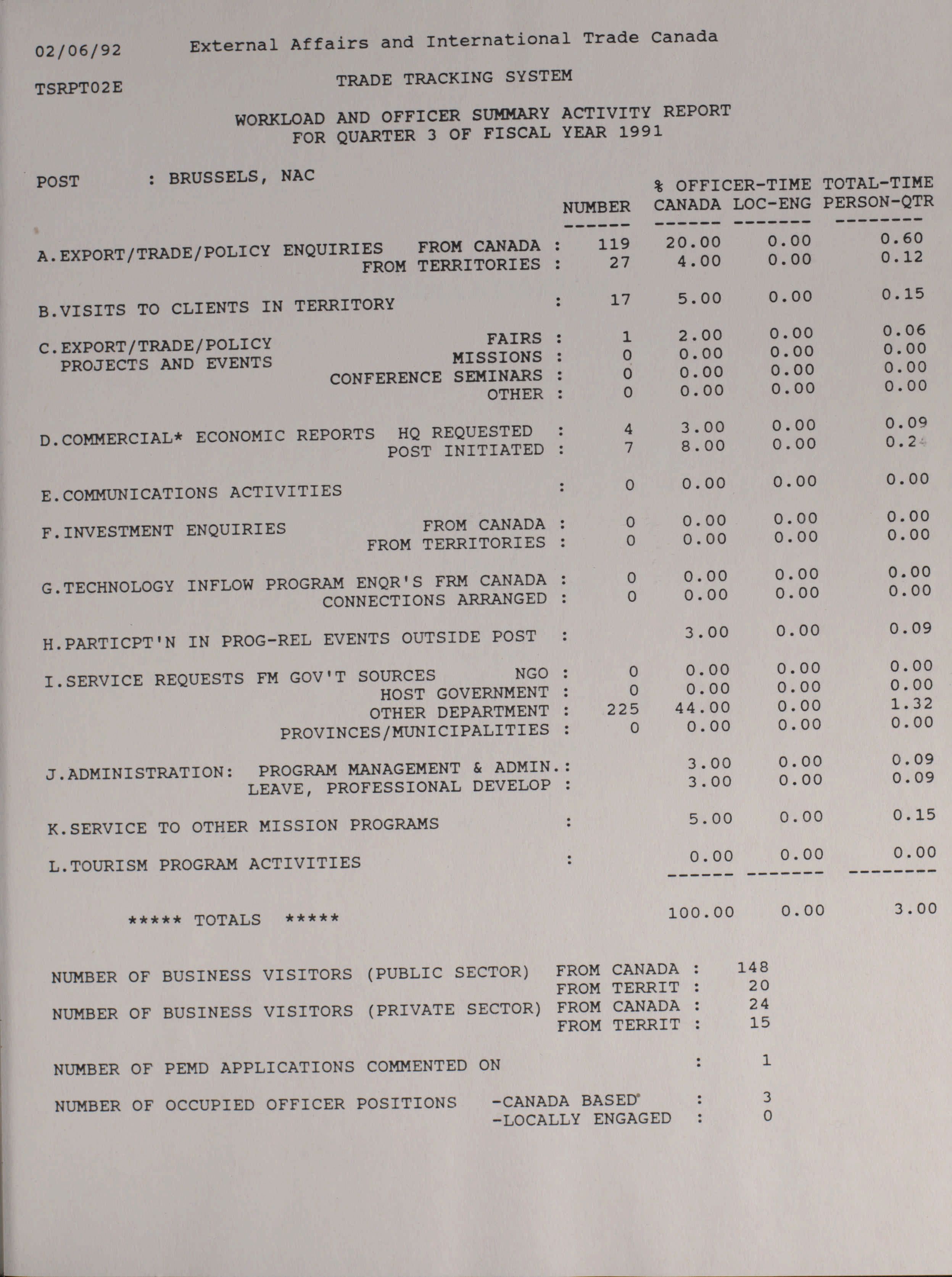 Trade and Industrial Development Program quarterly results and activity report = Programme d'expansion commerciale et industrielle rapport trimestriel des activités et des resultats.