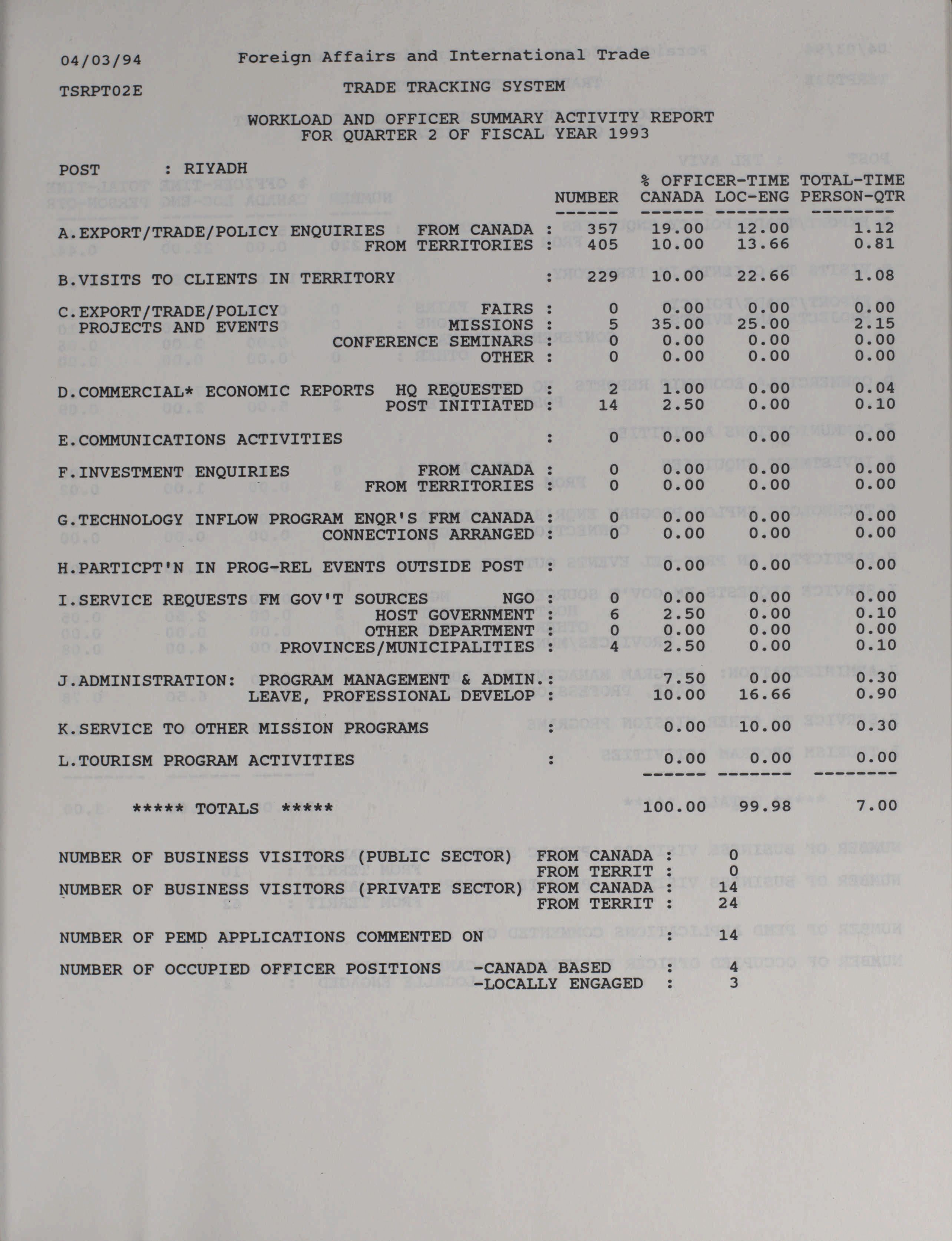 Trade and Industrial Development Program quarterly results and activity report = Programme d'expansion commerciale et industrielle rapport trimestriel des activités et des resultats.