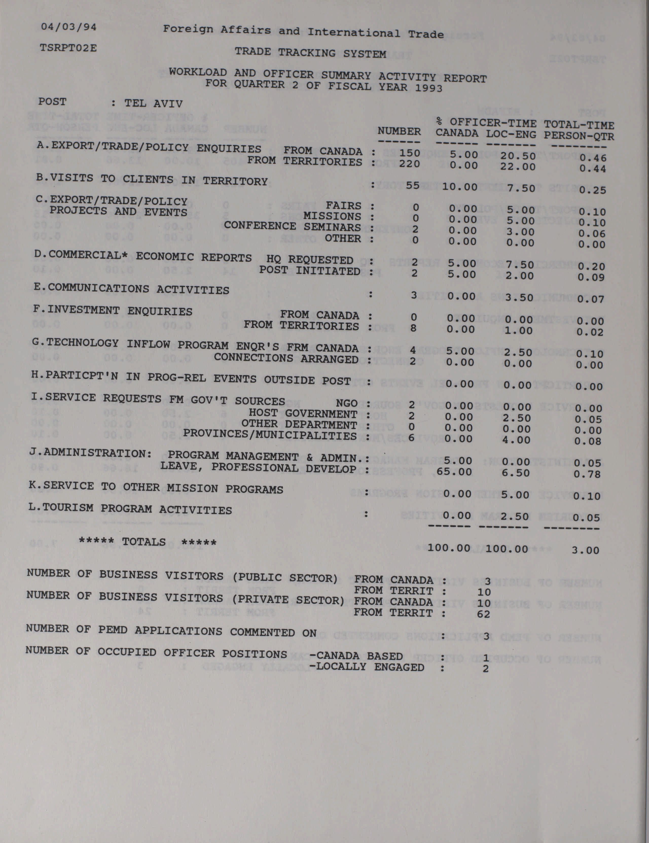 Trade and Industrial Development Program quarterly results and activity report = Programme d'expansion commerciale et industrielle rapport trimestriel des activités et des resultats.