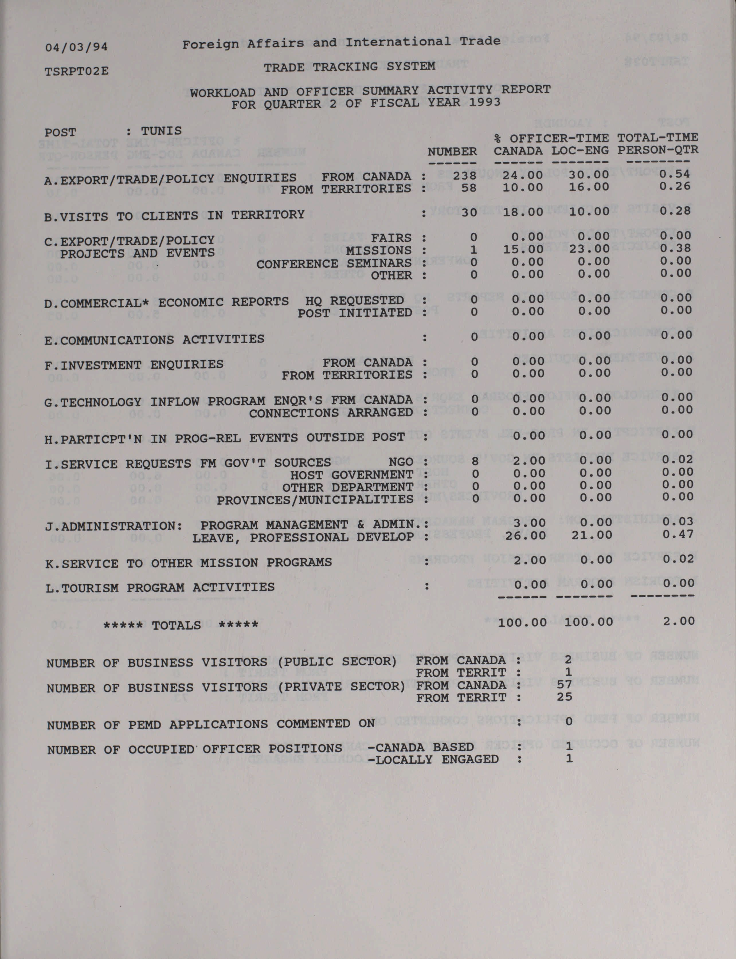 Trade and Industrial Development Program quarterly results and activity report = Programme d'expansion commerciale et industrielle rapport trimestriel des activités et des resultats.