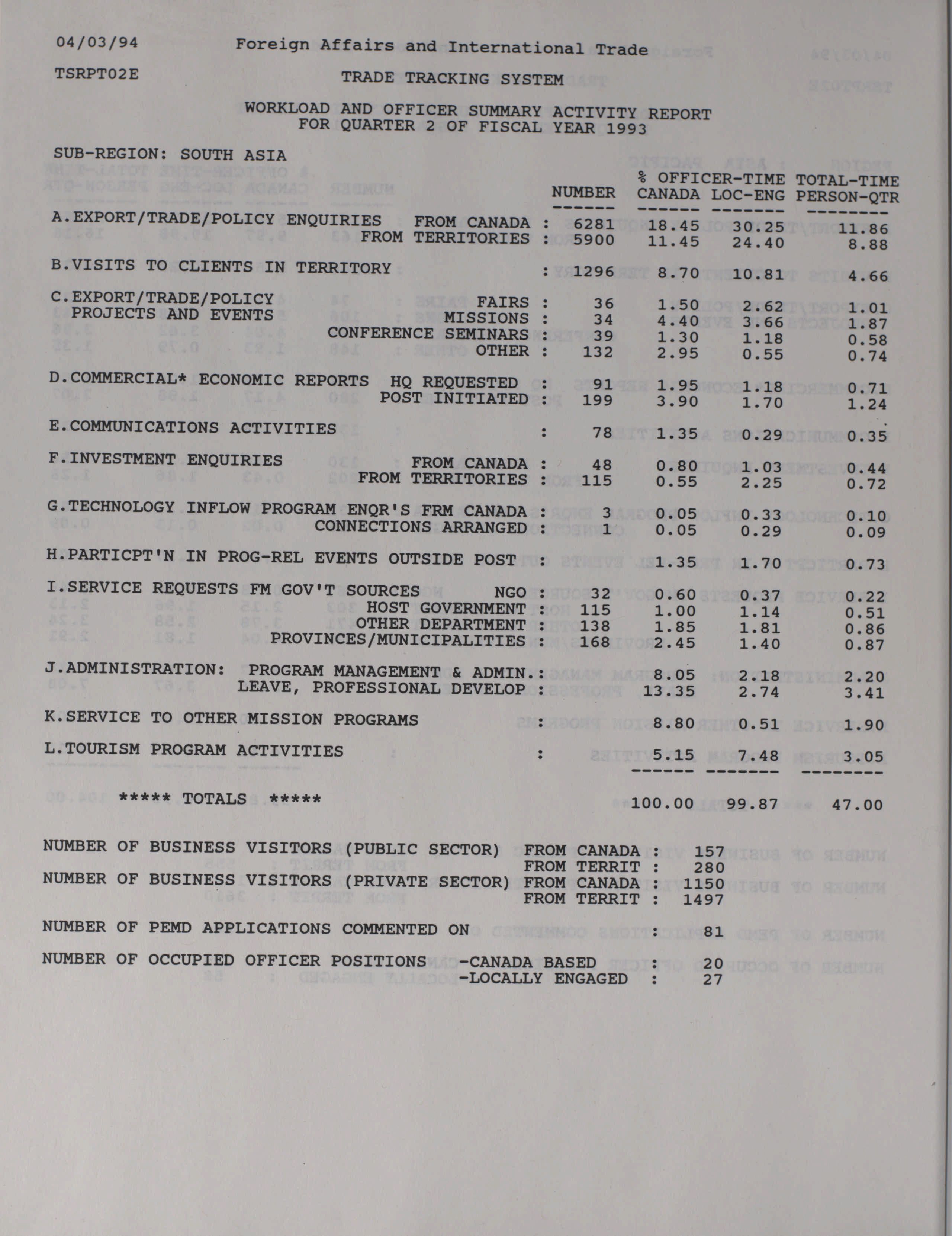 Trade and Industrial Development Program quarterly results and activity report = Programme d'expansion commerciale et industrielle rapport trimestriel des activités et des resultats.