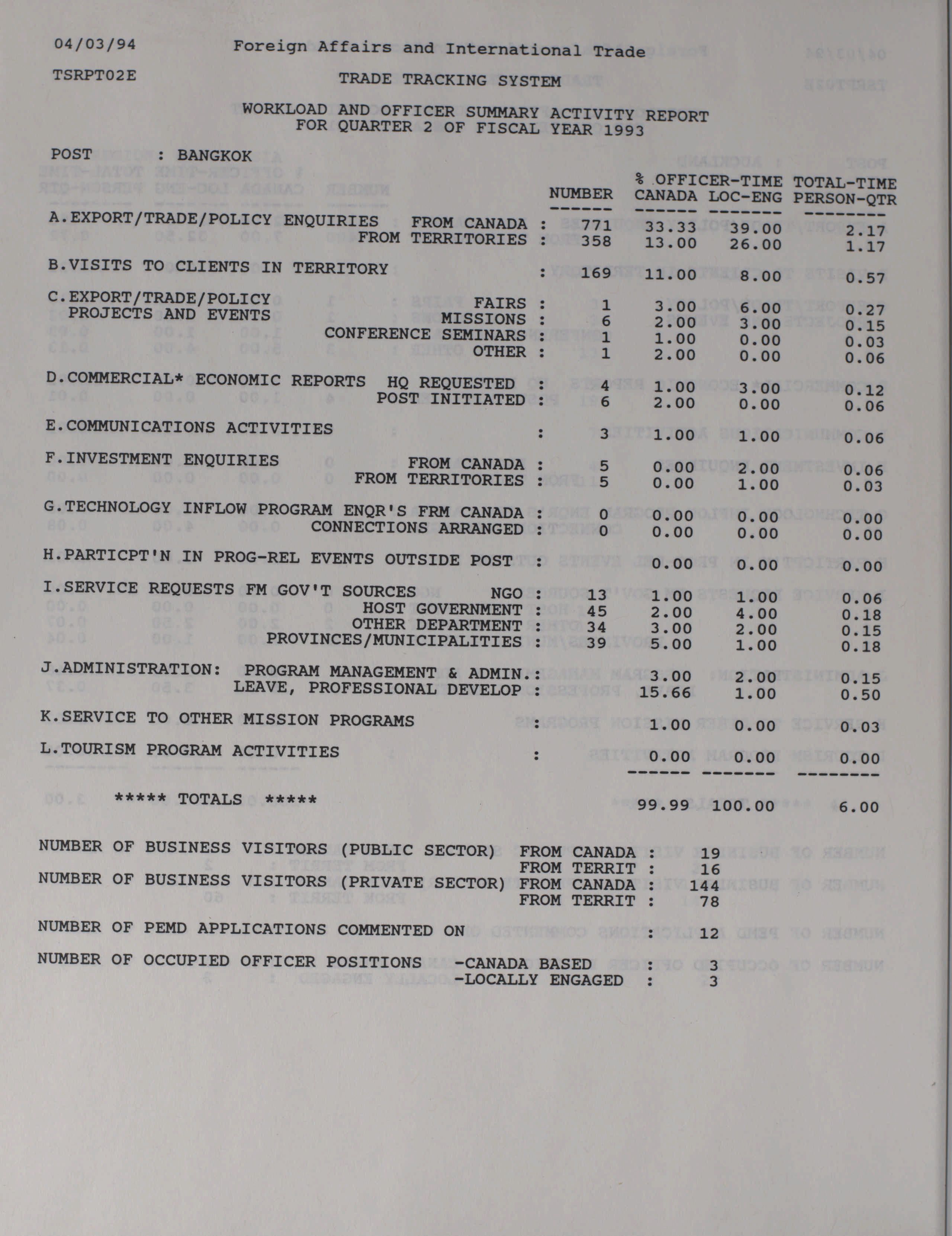 Trade and Industrial Development Program quarterly results and activity report = Programme d'expansion commerciale et industrielle rapport trimestriel des activités et des resultats.
