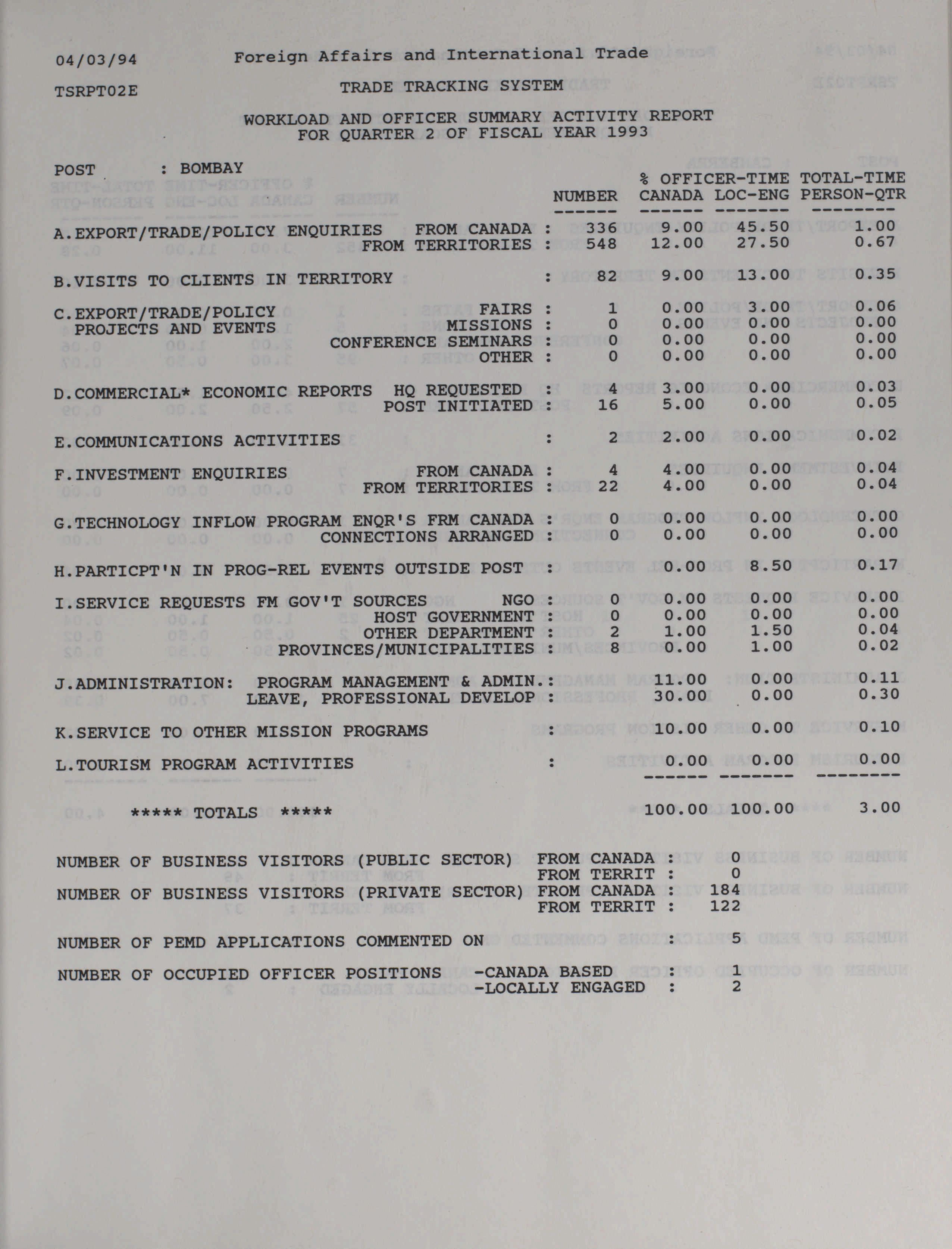 Trade and Industrial Development Program quarterly results and activity report = Programme d'expansion commerciale et industrielle rapport trimestriel des activités et des resultats.