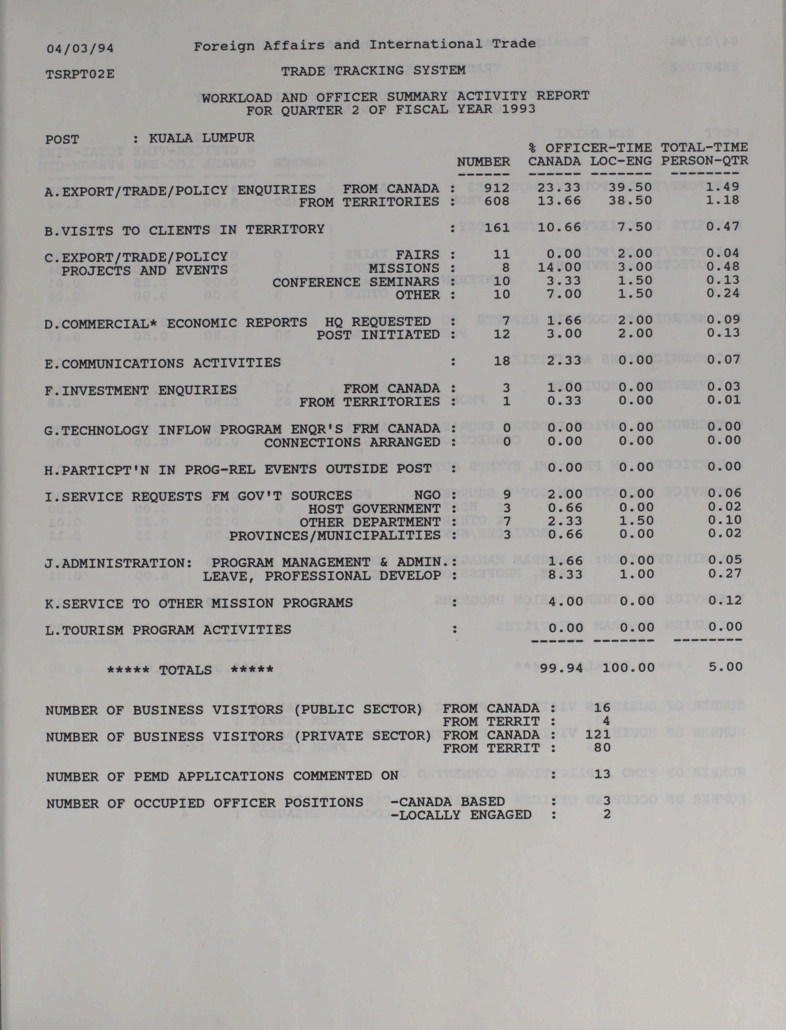 Trade and Industrial Development Program quarterly results and activity report = Programme d'expansion commerciale et industrielle rapport trimestriel des activités et des resultats.