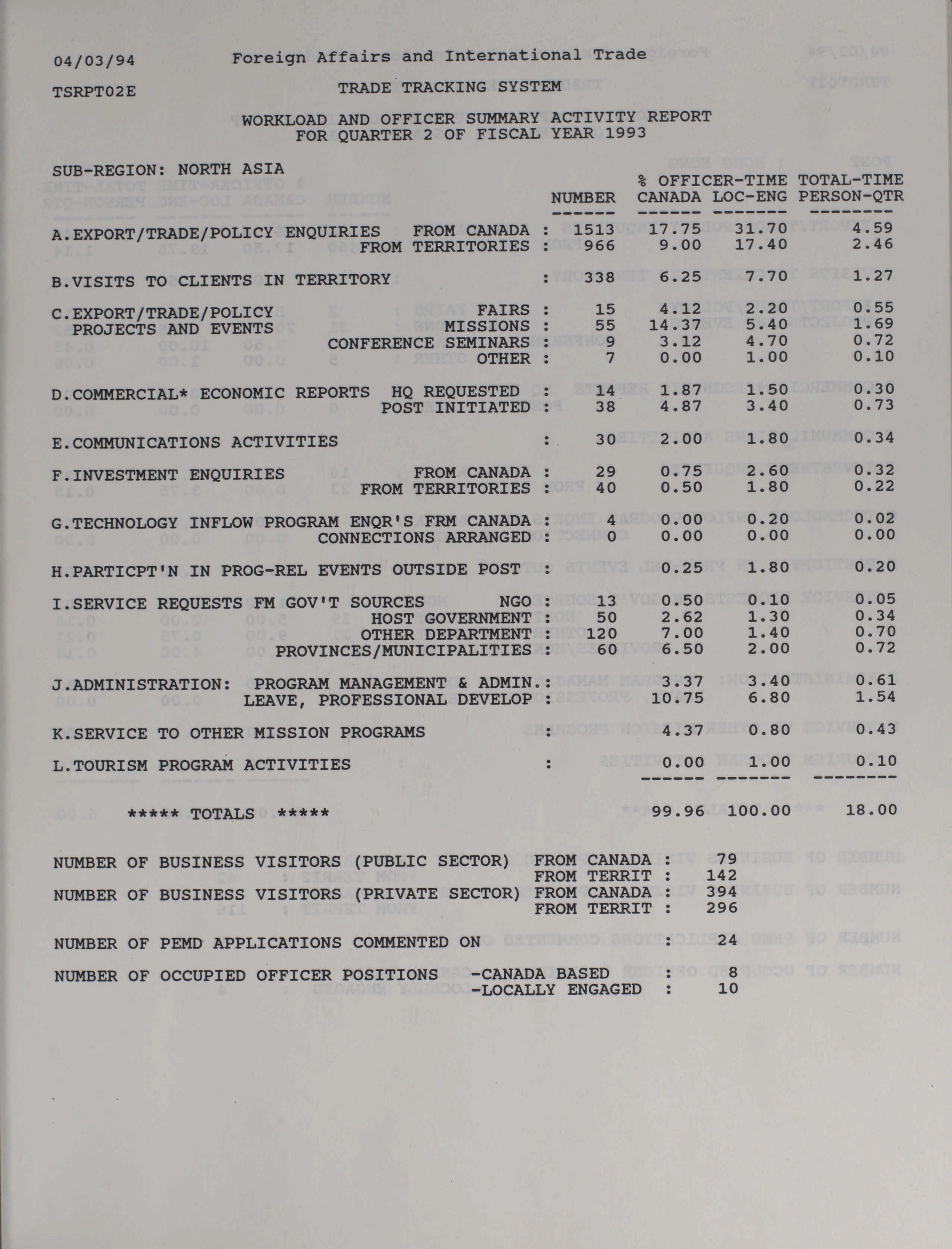 Trade and Industrial Development Program quarterly results and activity report = Programme d'expansion commerciale et industrielle rapport trimestriel des activités et des resultats.