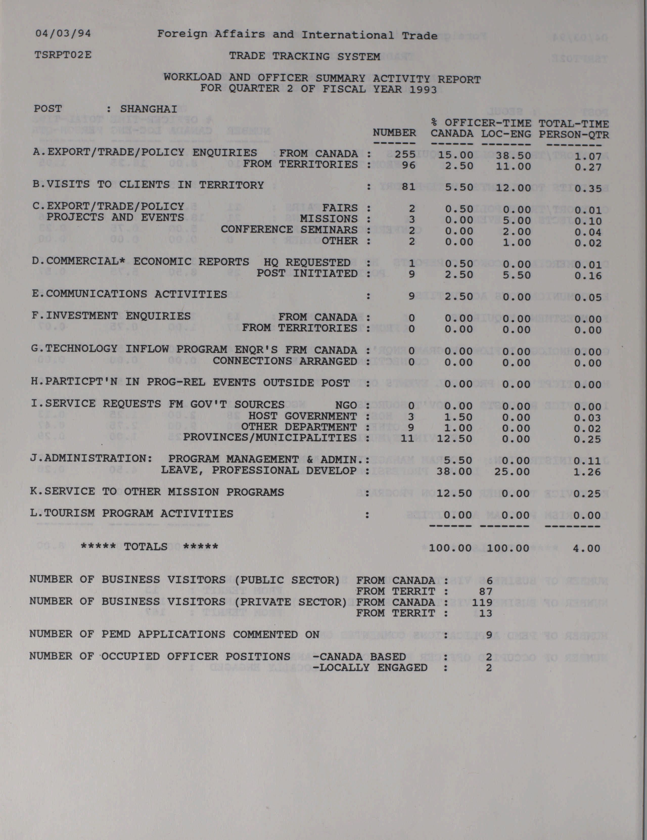 Trade and Industrial Development Program quarterly results and activity report = Programme d'expansion commerciale et industrielle rapport trimestriel des activités et des resultats.