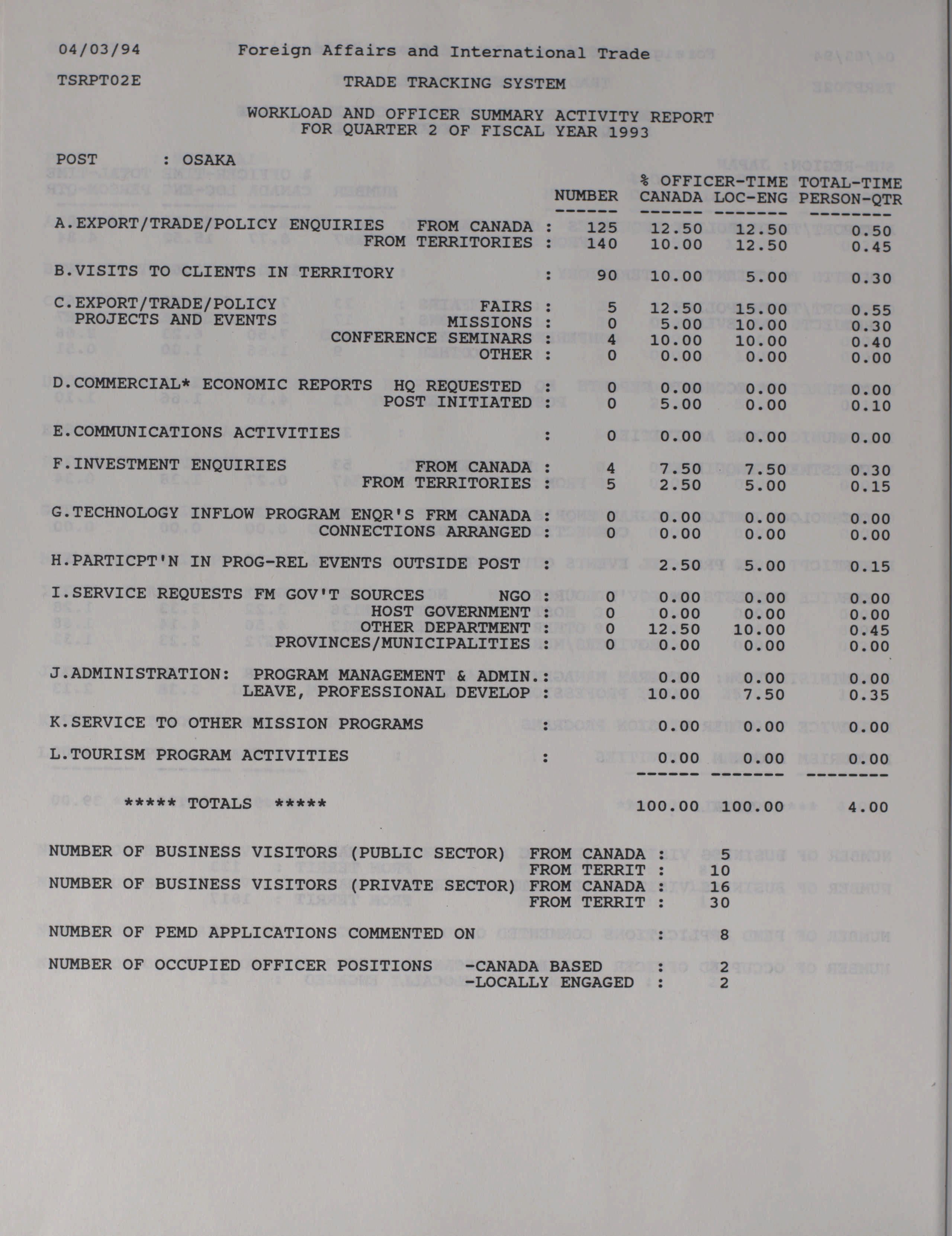 Trade and Industrial Development Program quarterly results and activity report = Programme d'expansion commerciale et industrielle rapport trimestriel des activités et des resultats.