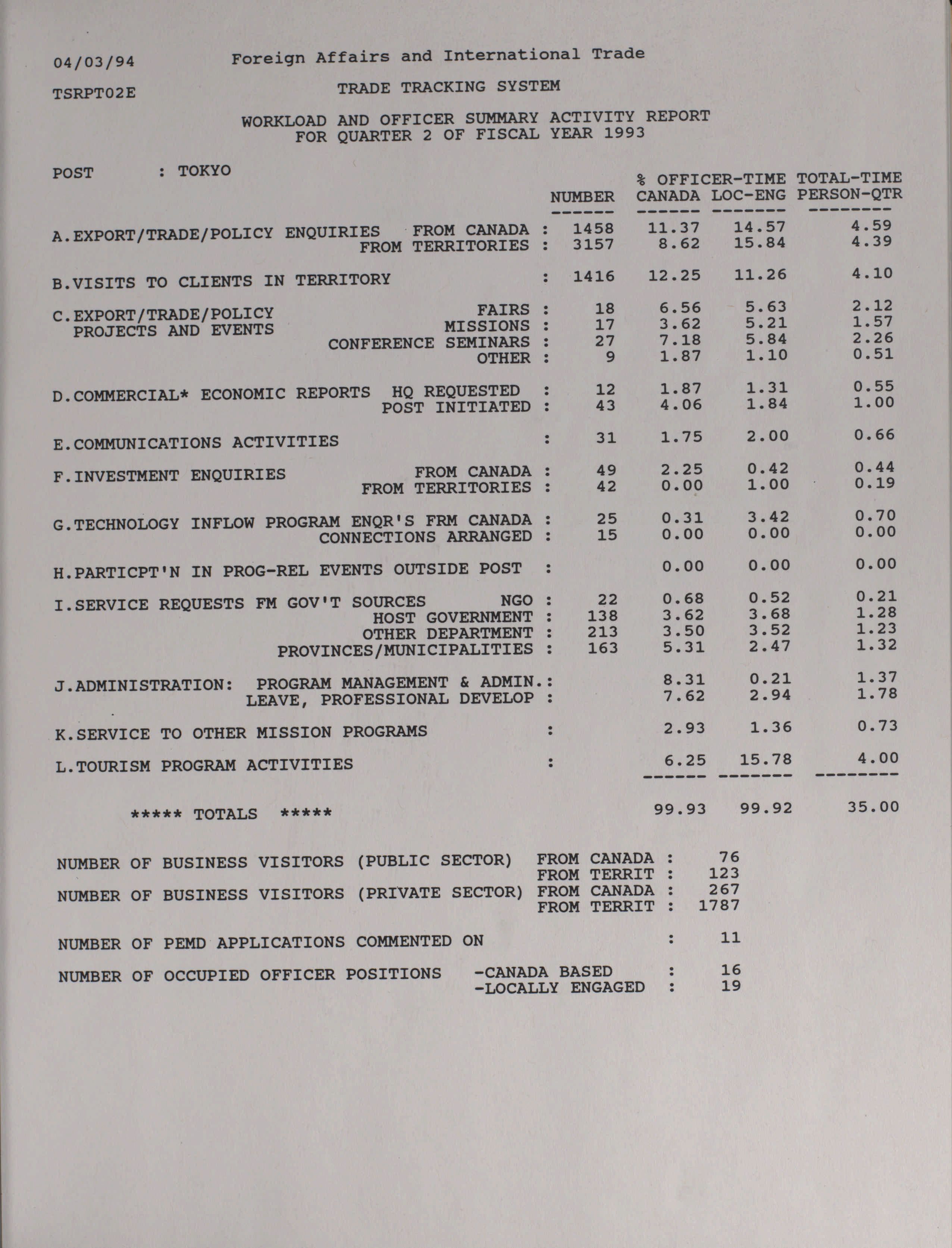 Trade and Industrial Development Program quarterly results and activity report = Programme d'expansion commerciale et industrielle rapport trimestriel des activités et des resultats.