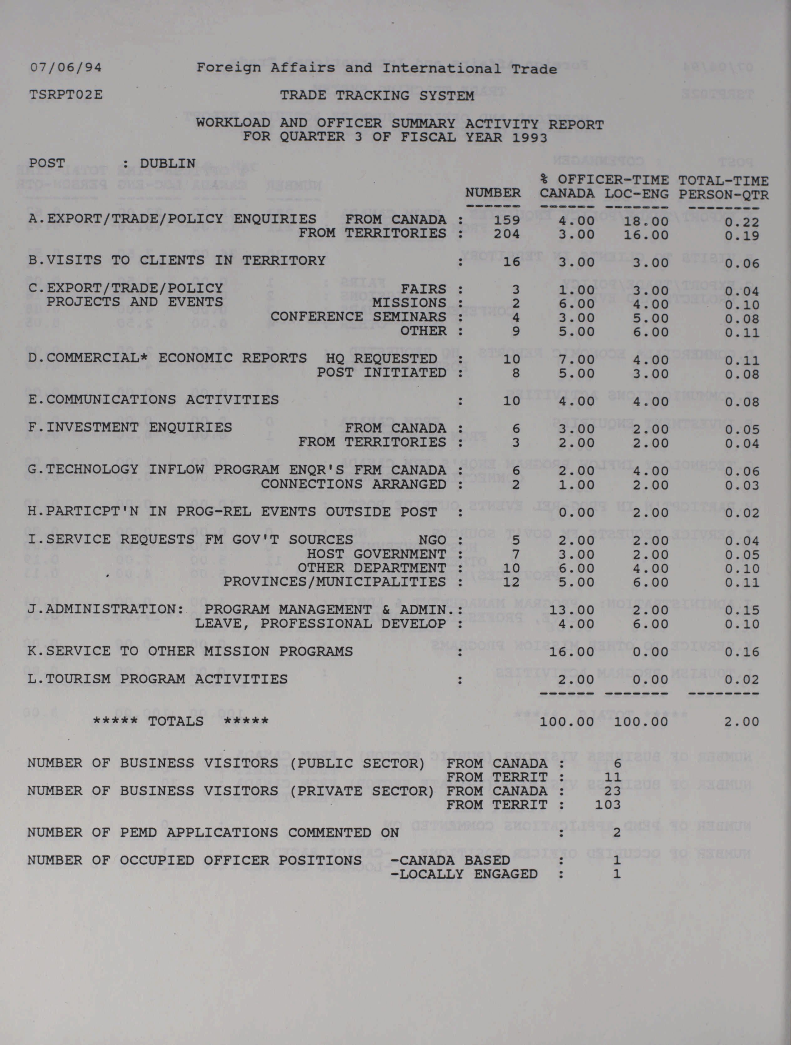 Trade and Industrial Development Program quarterly results and activity report = Programme d'expansion commerciale et industrielle rapport trimestriel des activités et des resultats.