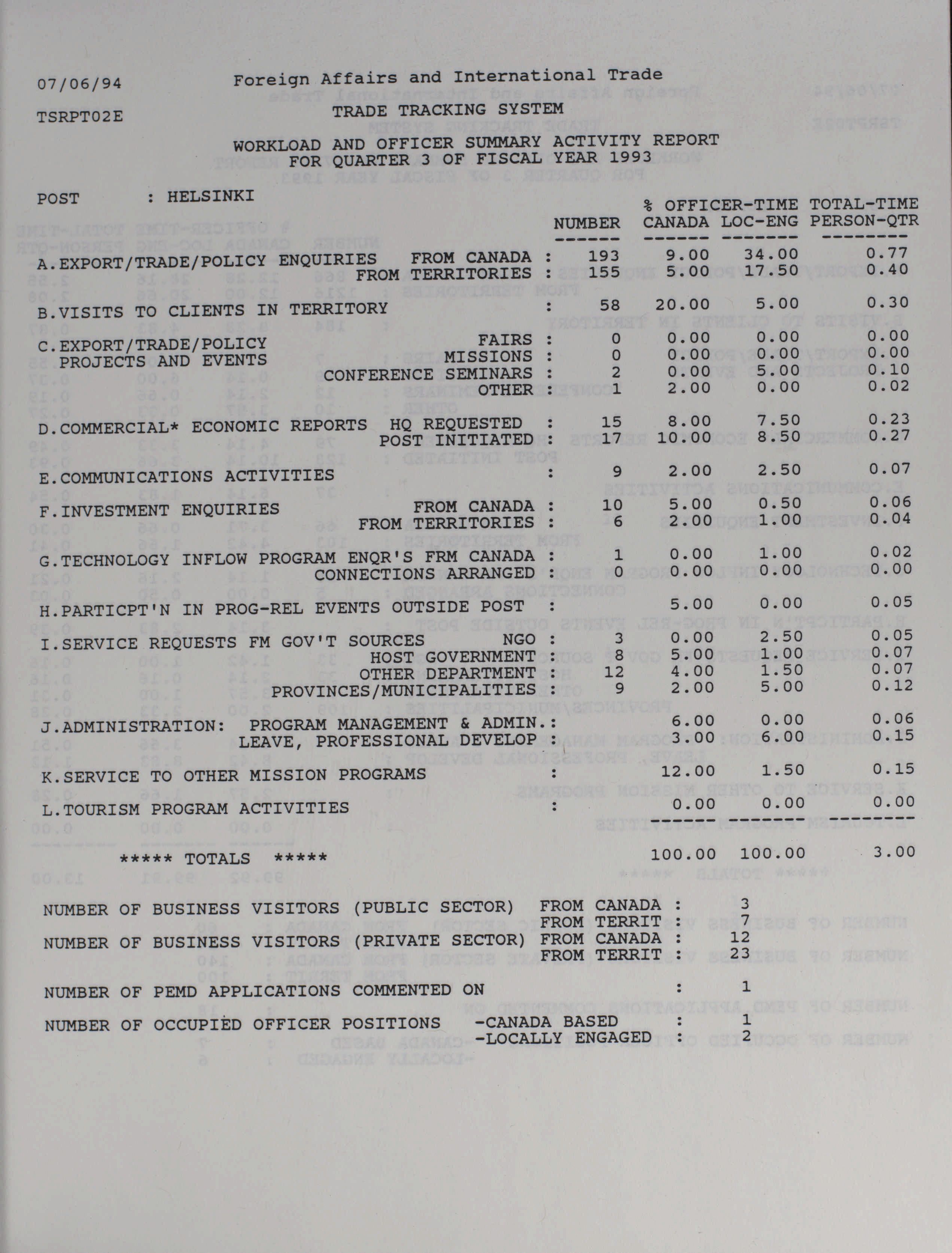 Trade and Industrial Development Program quarterly results and activity report = Programme d'expansion commerciale et industrielle rapport trimestriel des activités et des resultats.
